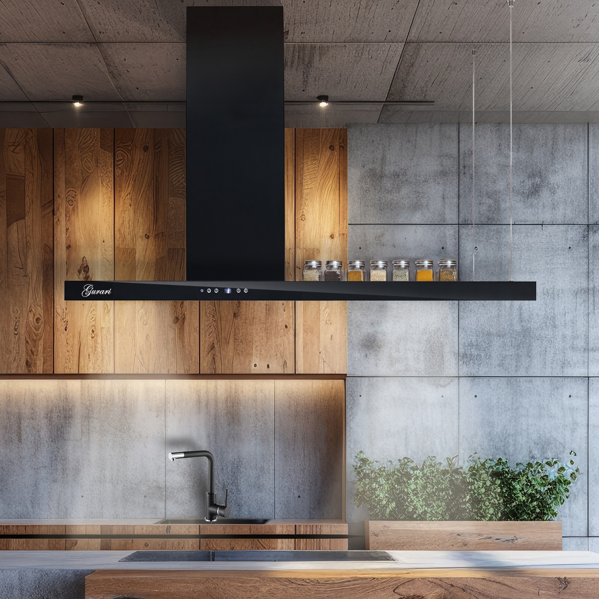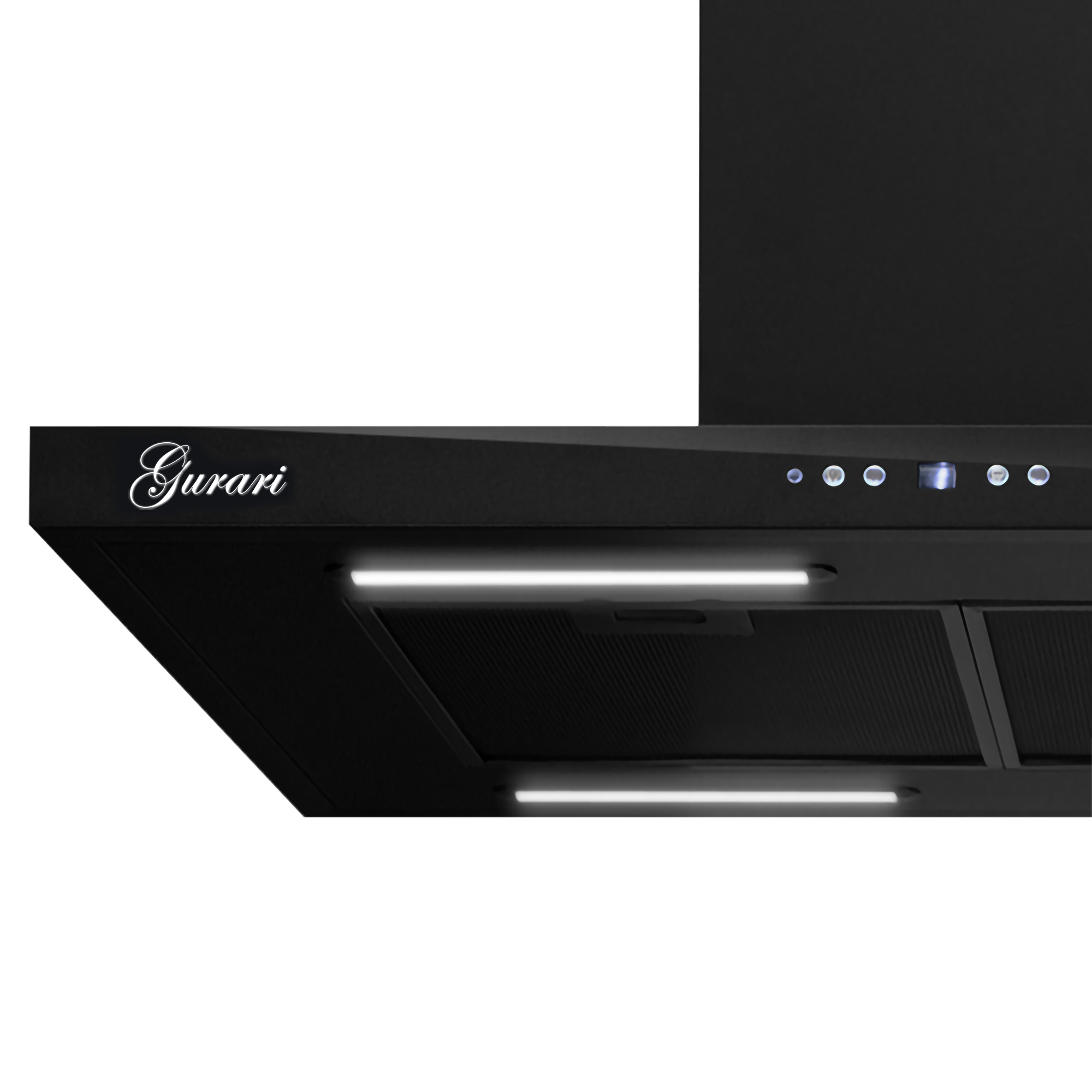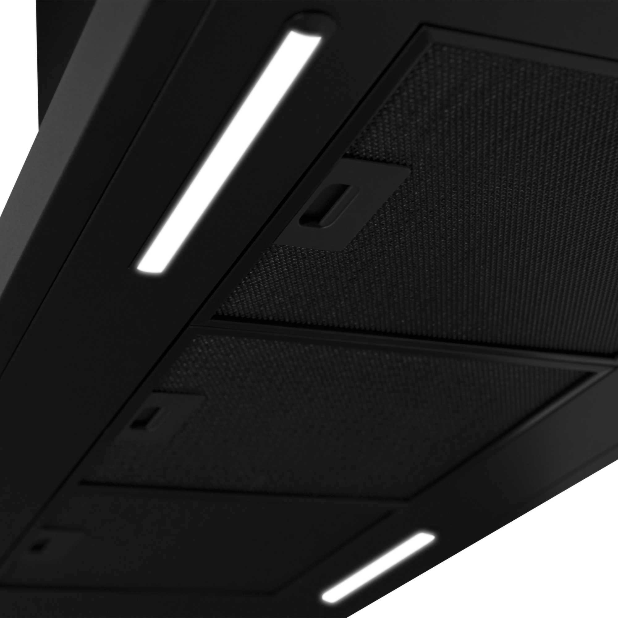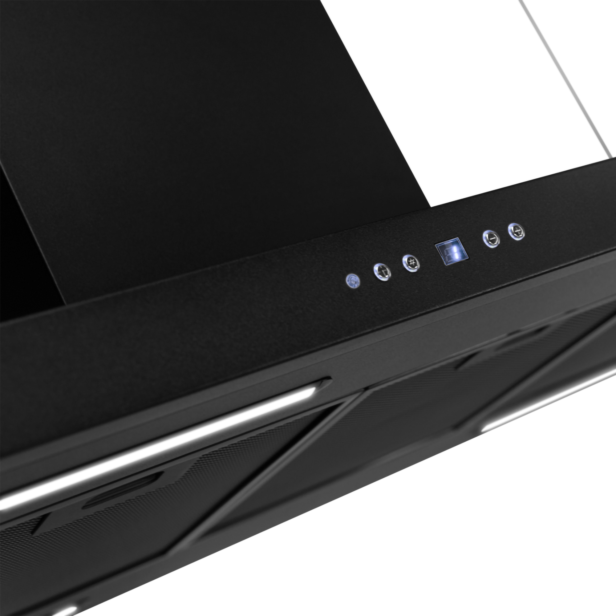- Die Dunstabzugshaube ist komplett in Schwarz gehalten..