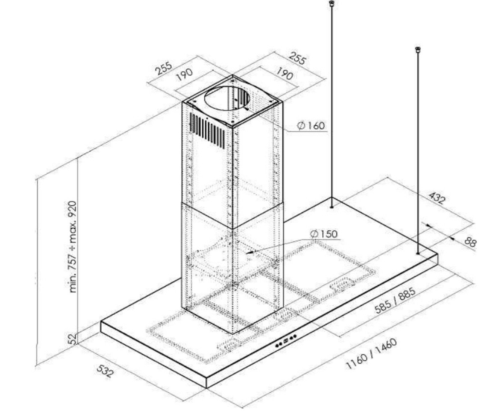 Das Modell GCH 793.R Diamond Eco BL wurde als Inselhaube für die Deckenmontage konzipiert