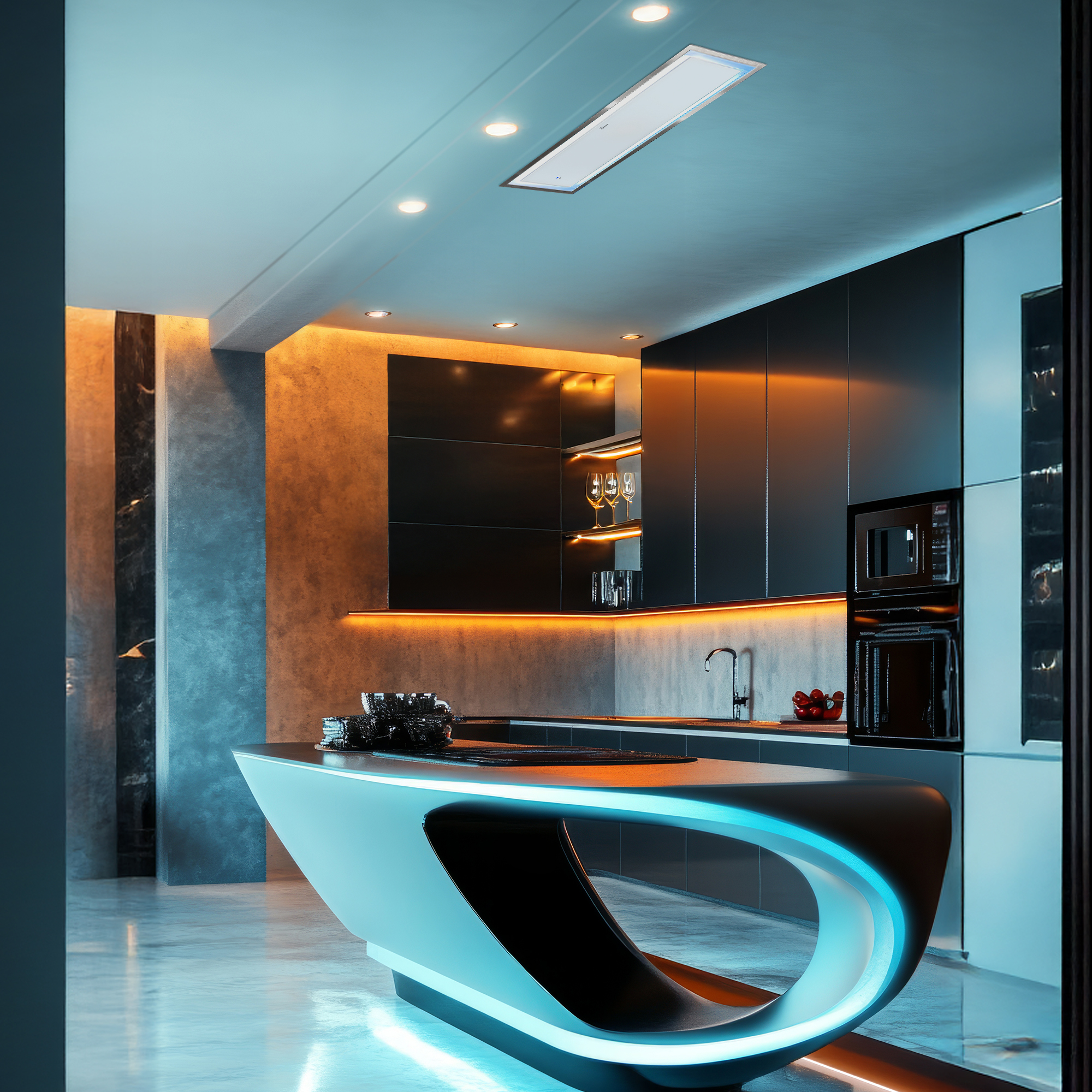 Für ausreichend Power sorgt ein bis zu 850 m³/h leistender Motor im Inneren der Deckenhaube