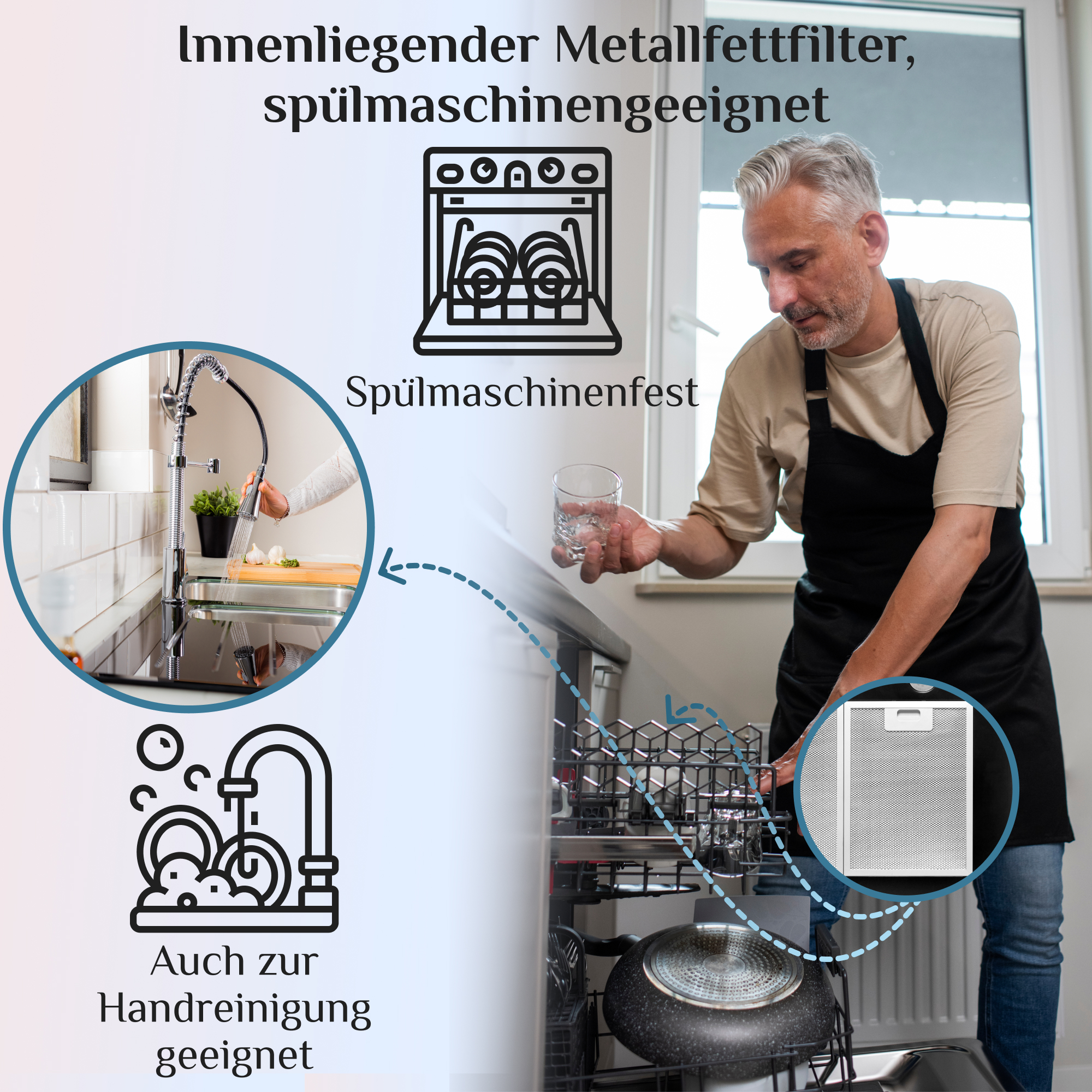 Für ausreichend Power sorgt ein bis zu 1000m³/h leistender Motor im Inneren der Dunstabzugshaube. Reguliert wird dieser über drei Leistungsstufen.