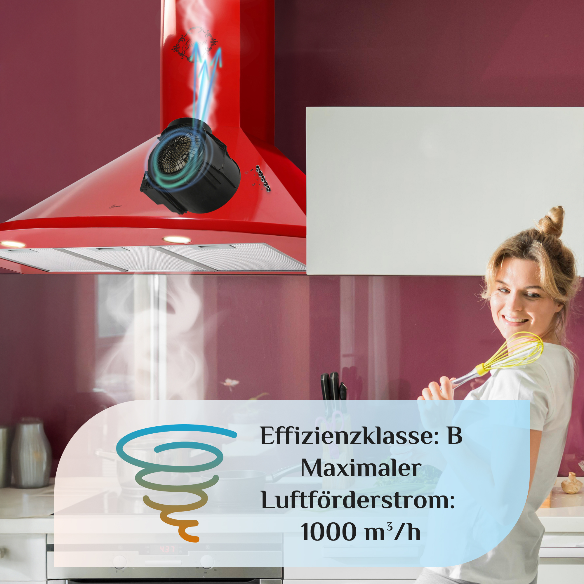 Für ausreichend Power sorgt ein bis zu 1000m³/h leistender Motor im Inneren der Dunstabzugshaube. Reguliert wird dieser über drei Leistungsstufen.