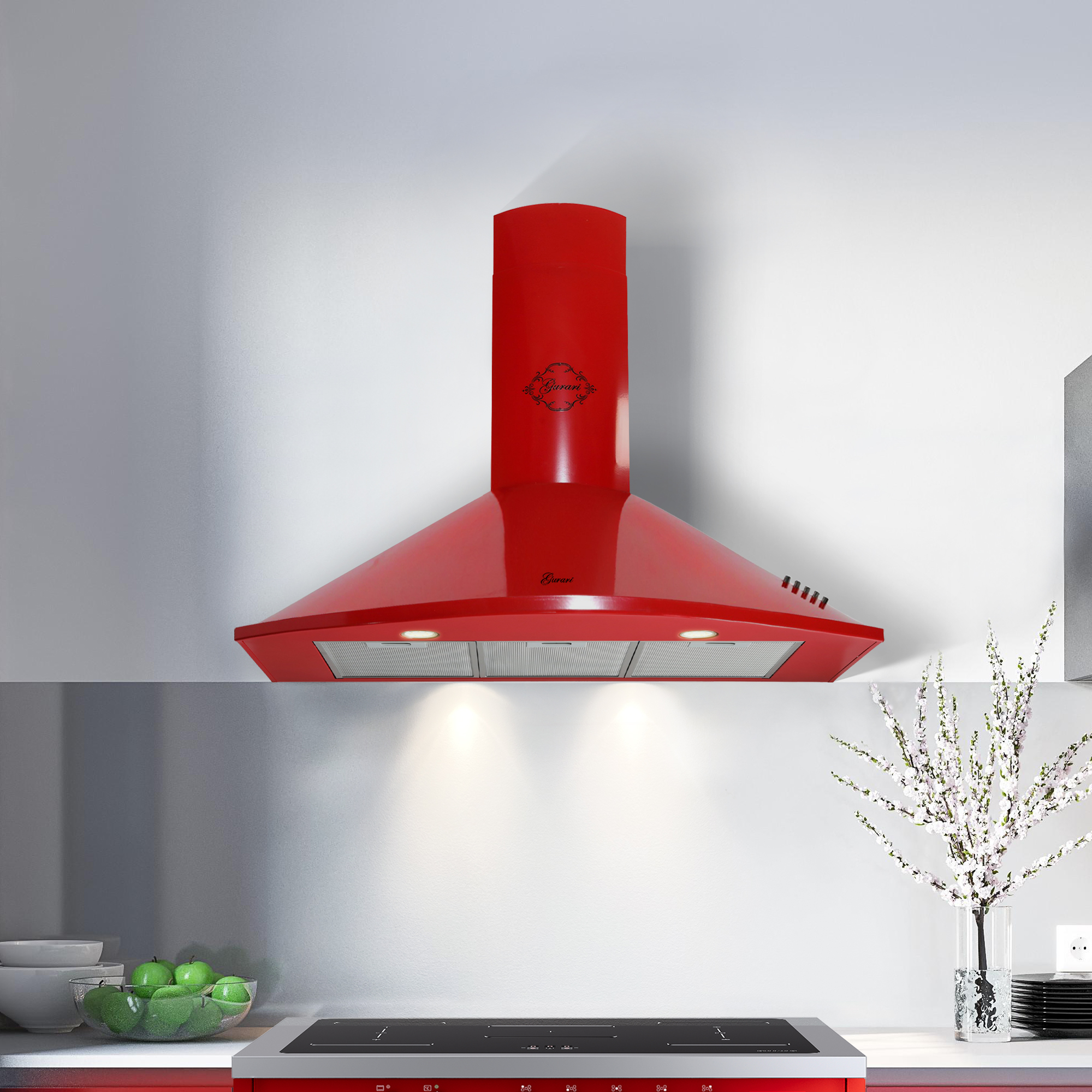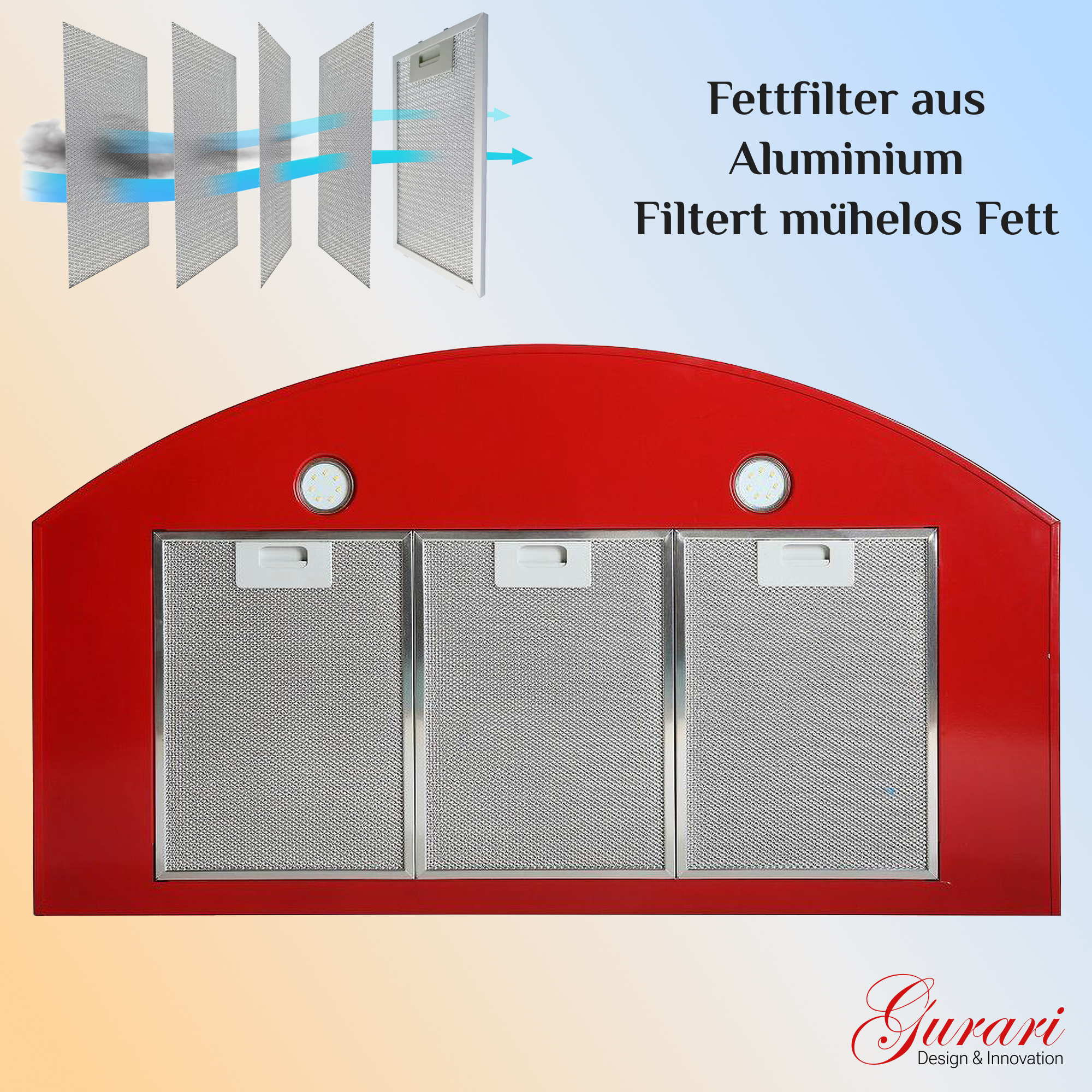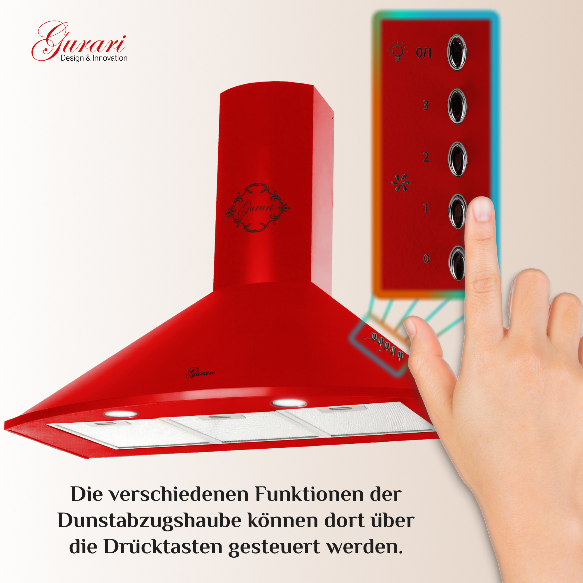 Das Modell GCH C 046 RD 9 N ist eine moderne Dunstabzugshaube in klassischer Bauweise. Korpus und Kamin sind rot lackiert.