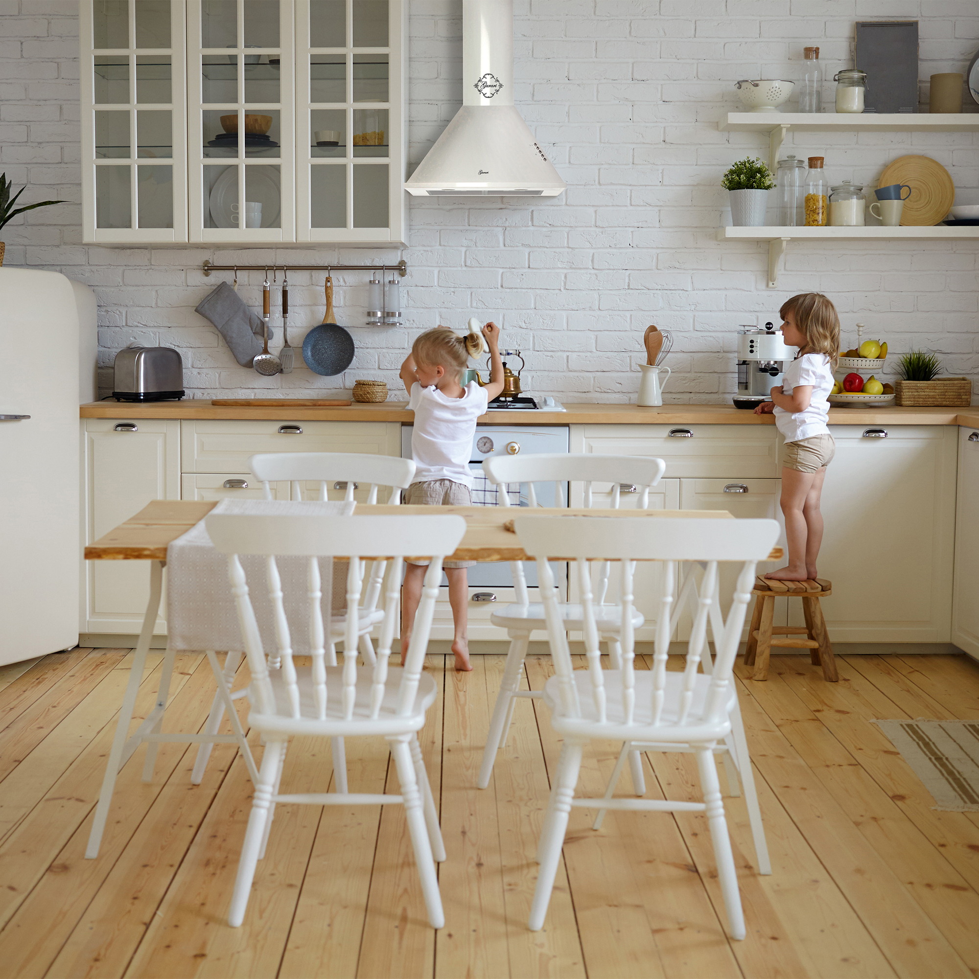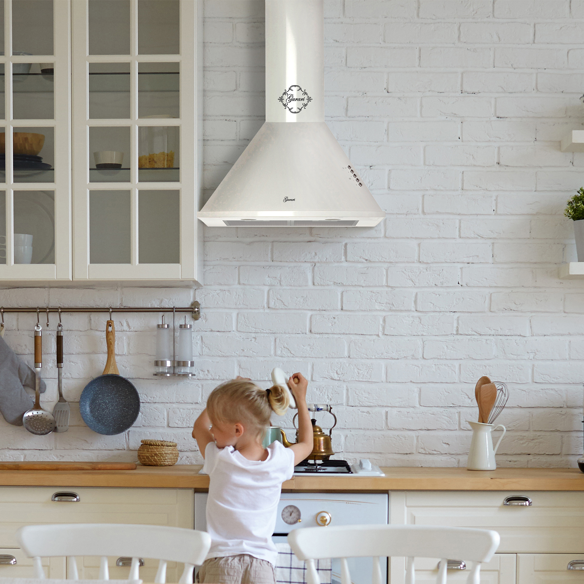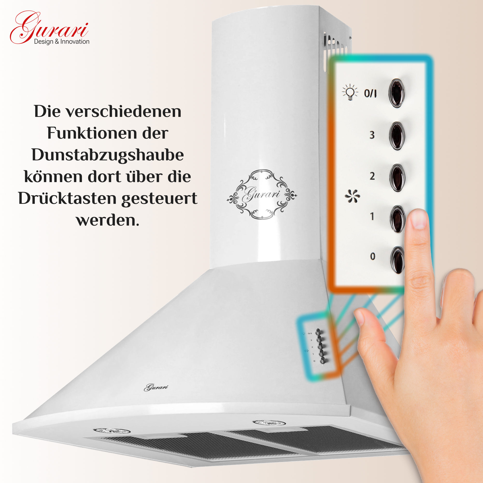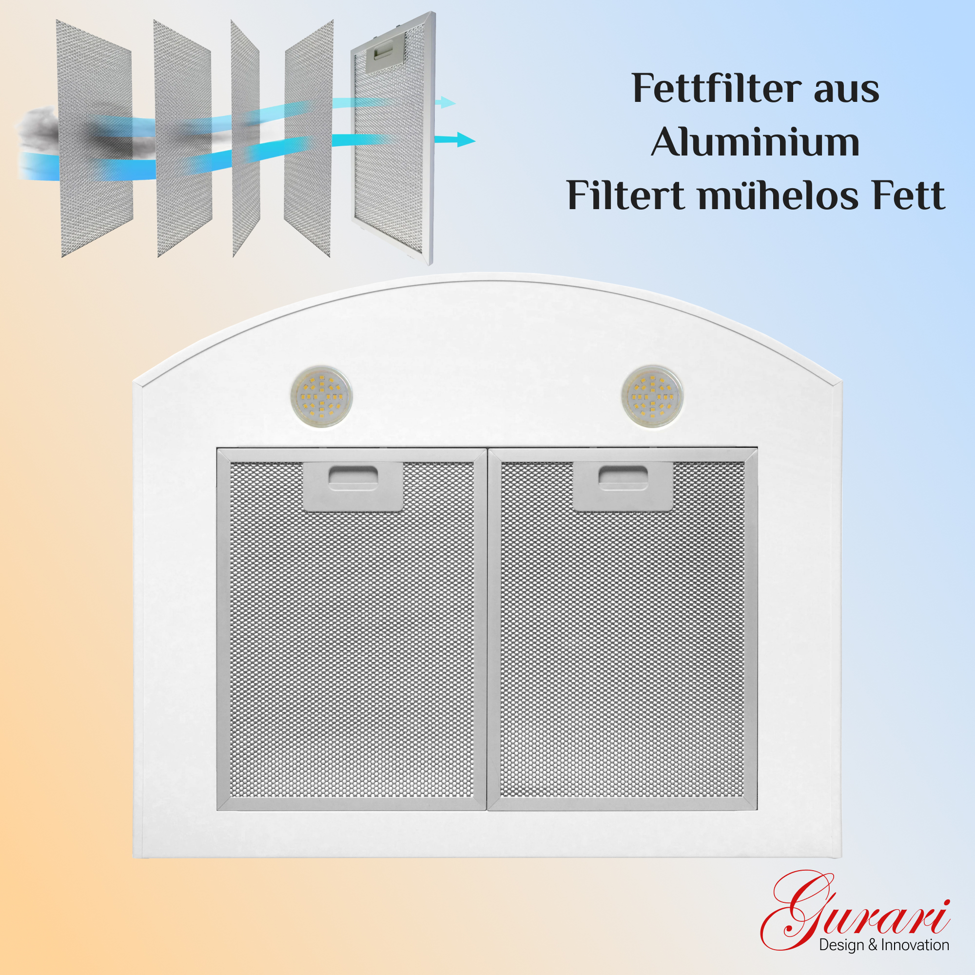 Das Modell GCH C 046 WH 6 N ist eine moderne Dunstabzugshaube in klassischer Bauweise. Korpus und Kamin sind weiß lackiert.