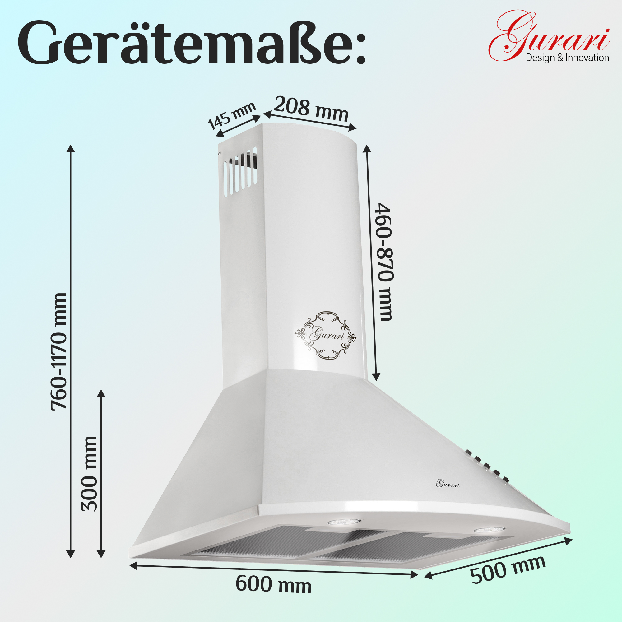 Für ausreichend Power sorgt ein bis zu 1000m³/h leistender Motor im Inneren der Dunstabzugshaube. Reguliert wird dieser über drei Leistungsstufen.