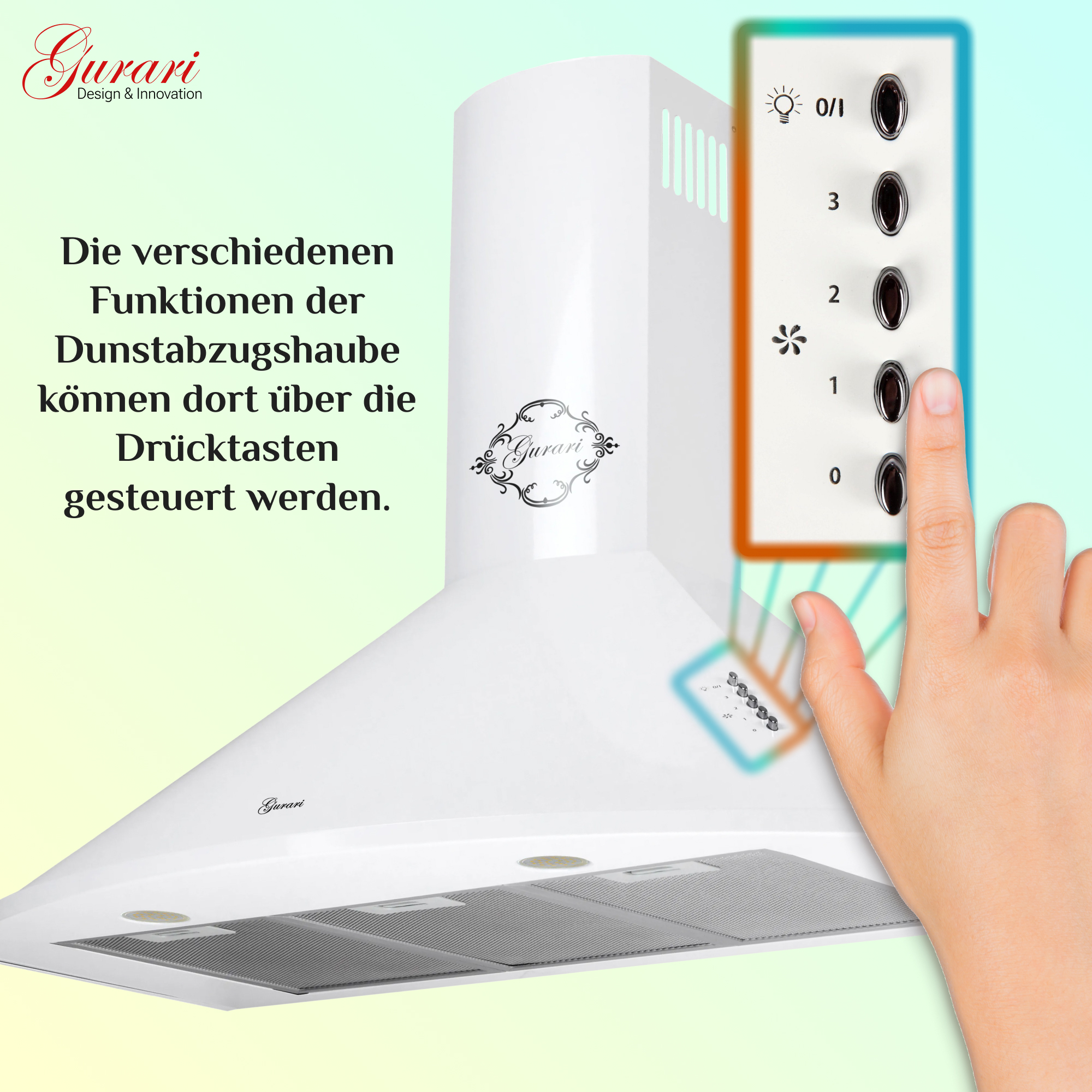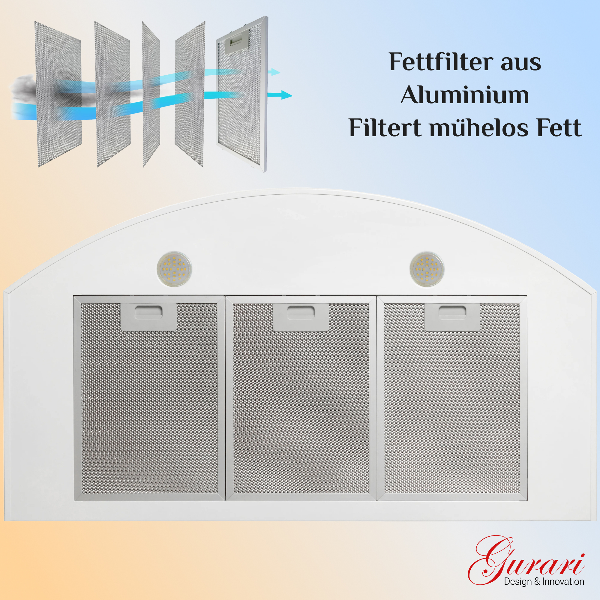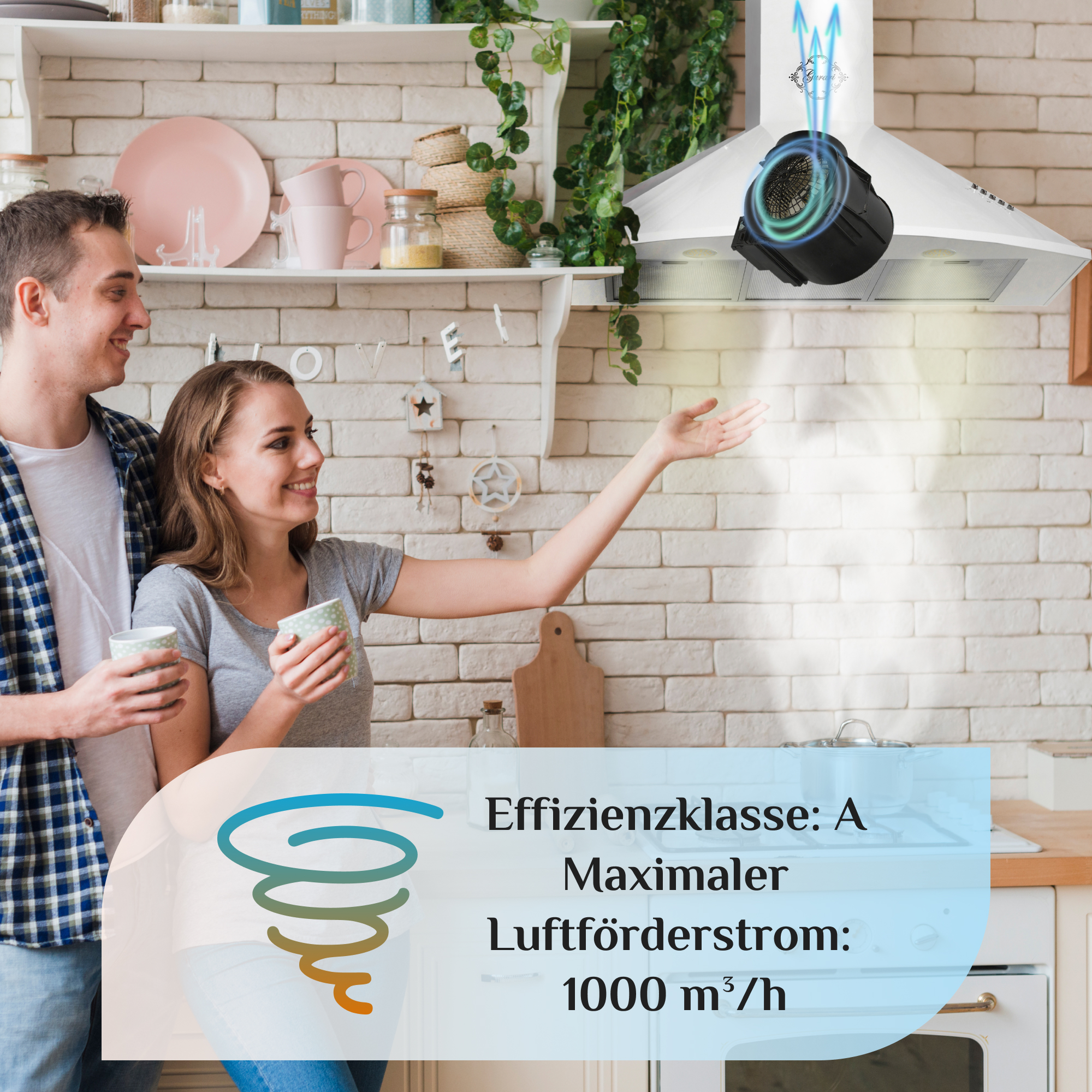 Für ausreichend Power sorgt ein bis zu 1000m³/h leistender Motor im Inneren der Dunstabzugshaube. Reguliert wird dieser über drei Leistungsstufen.