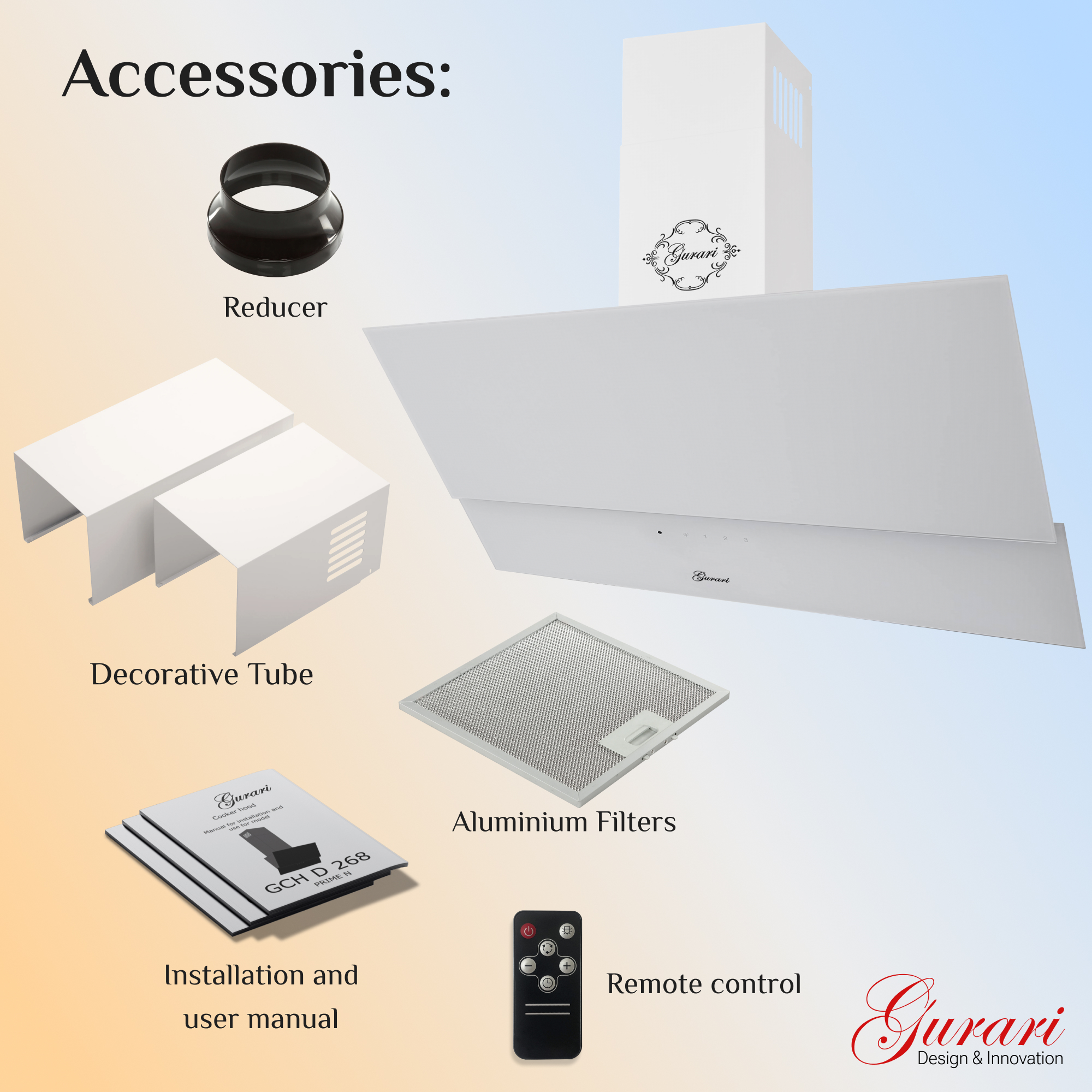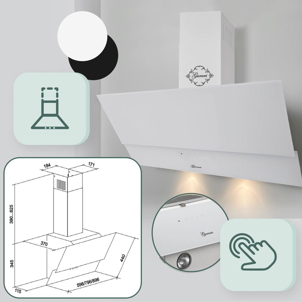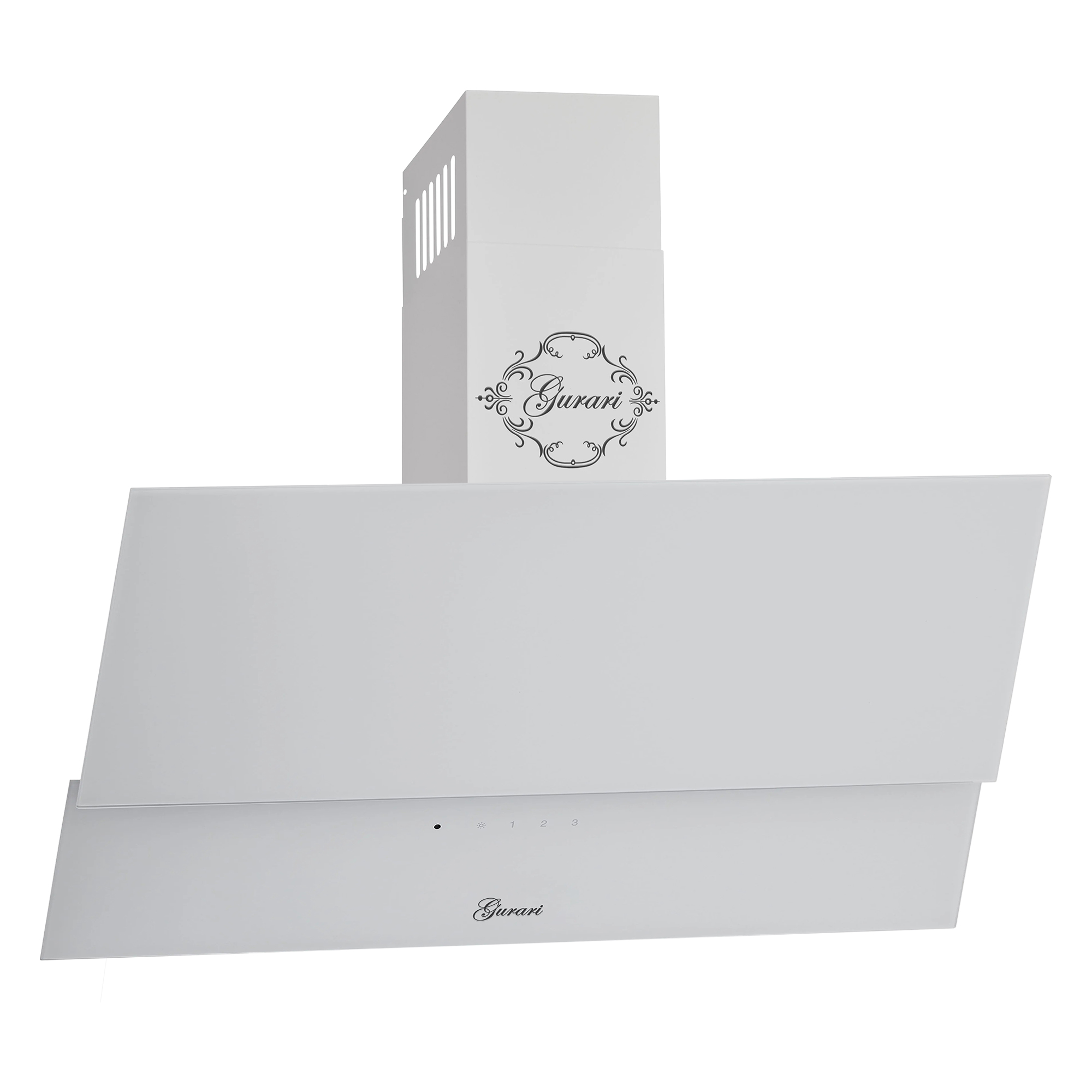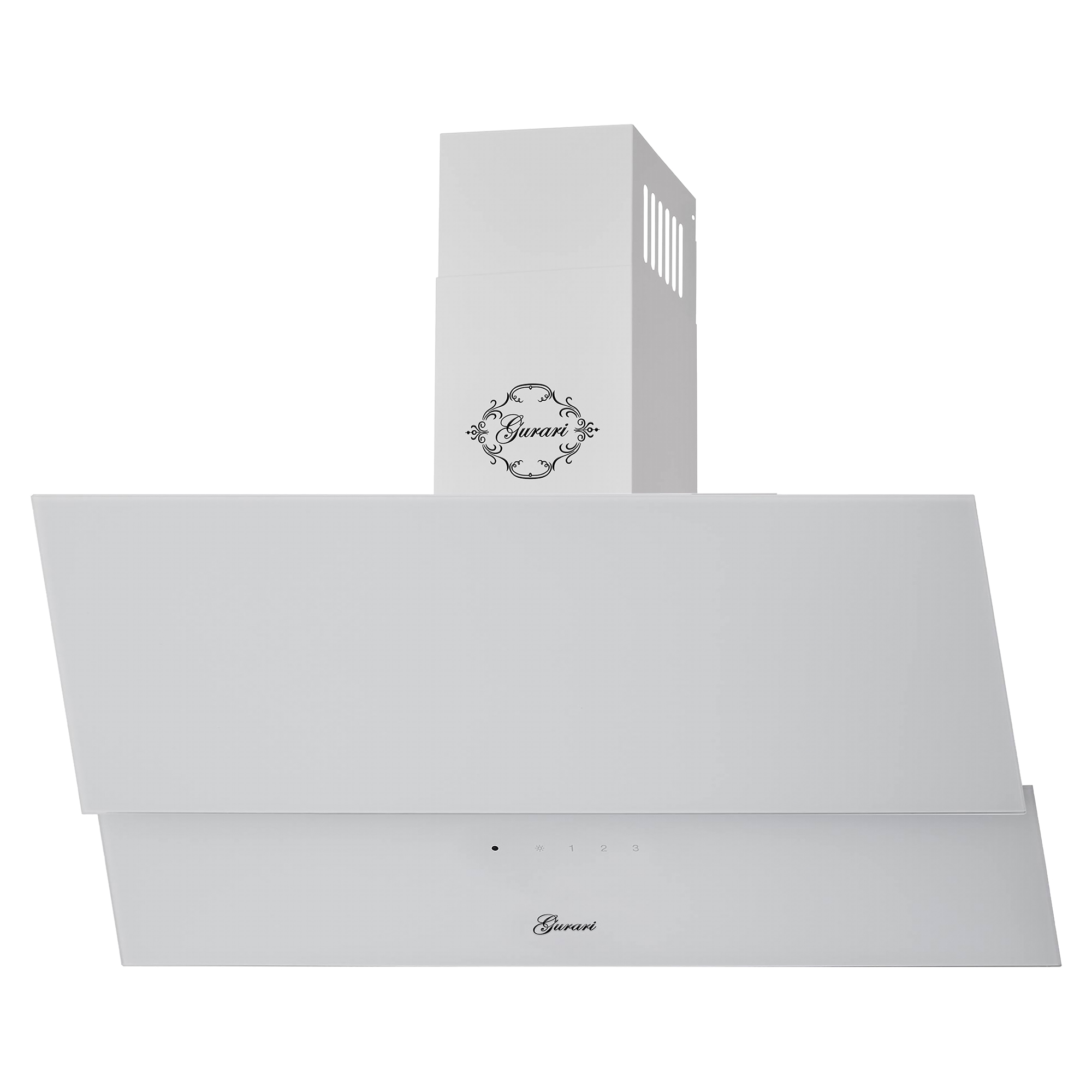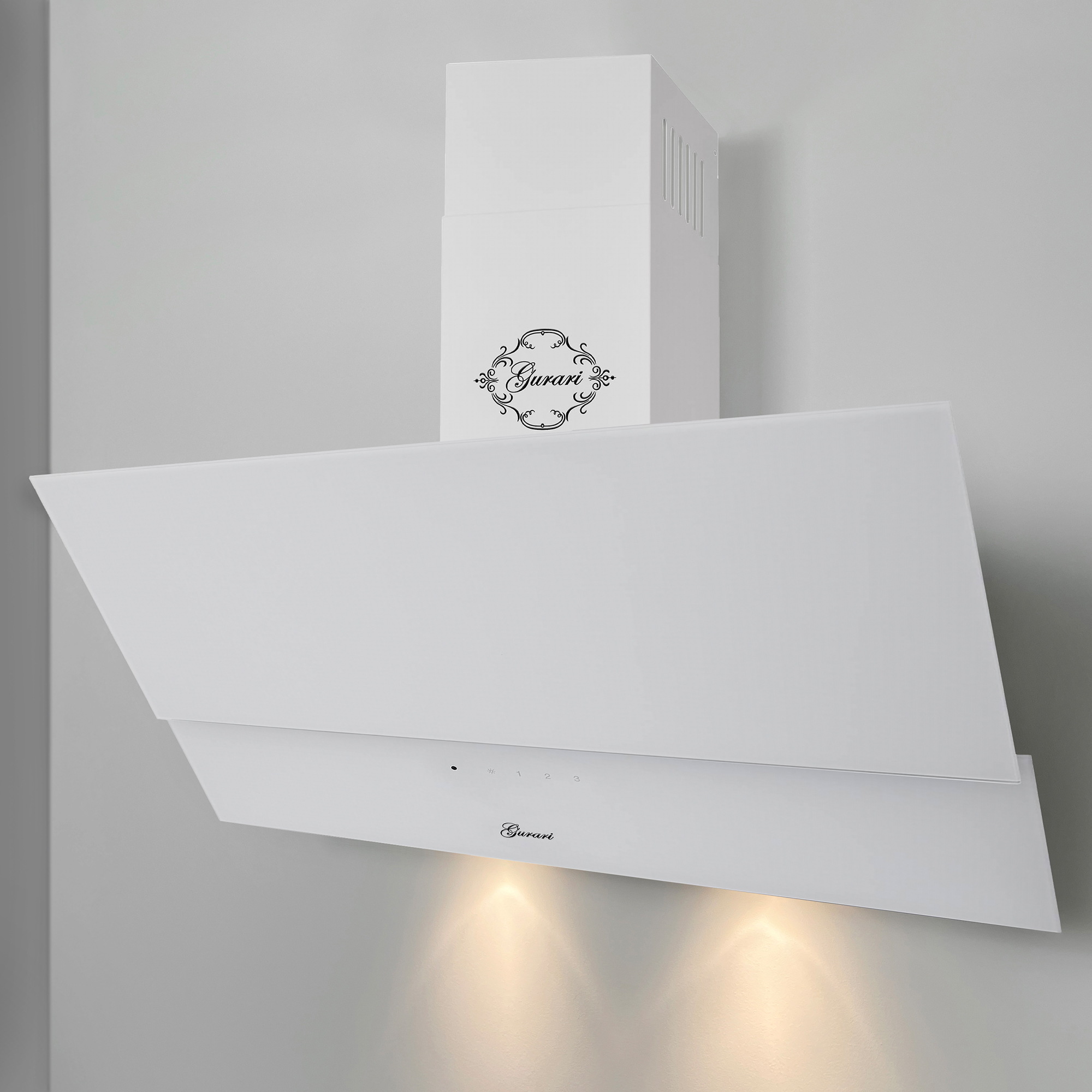 Das Modell GCH D 268 WH 8 PRIME N ist eine moderne Dunstabzugshaube in kopffreier Bauweise. Korpus und Kamin sind weiß lackiert. Die Front besteht aus Weißglas und ist in zwei Teile unterteilt