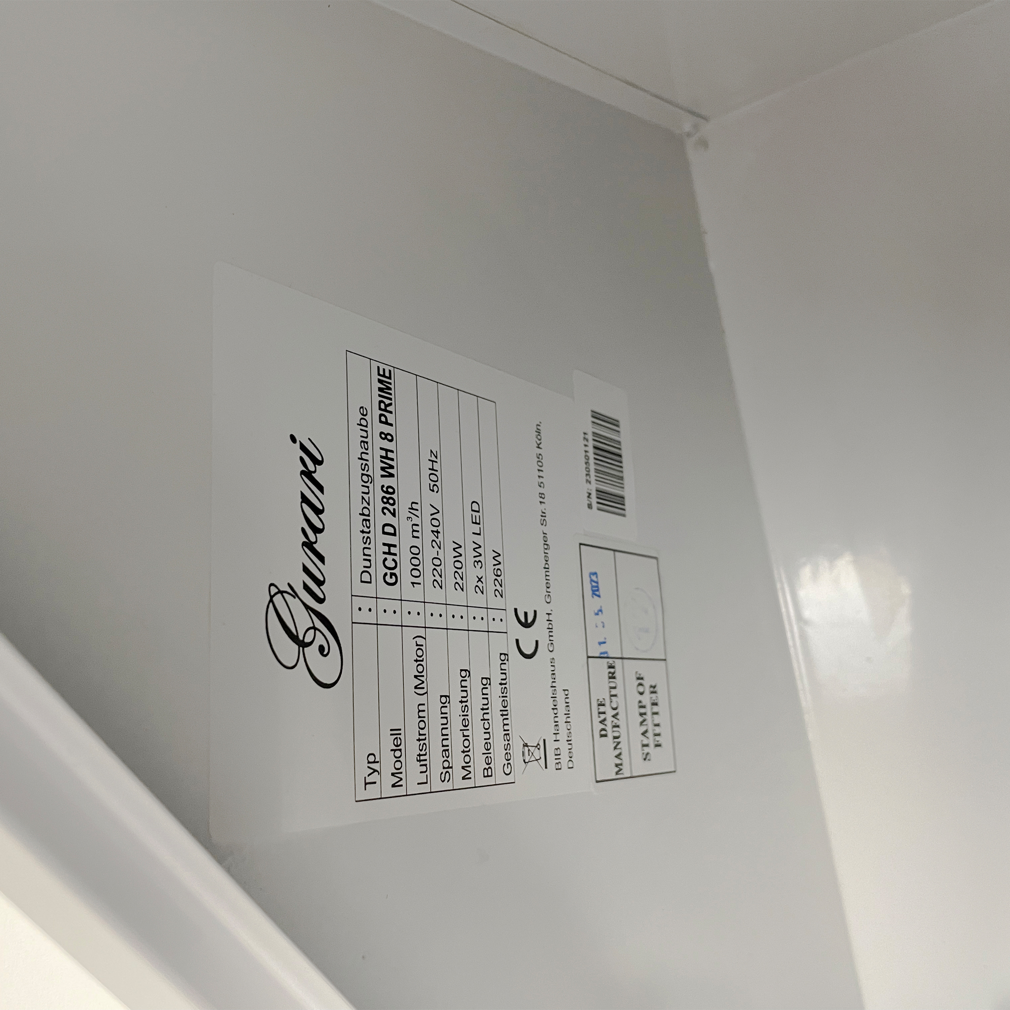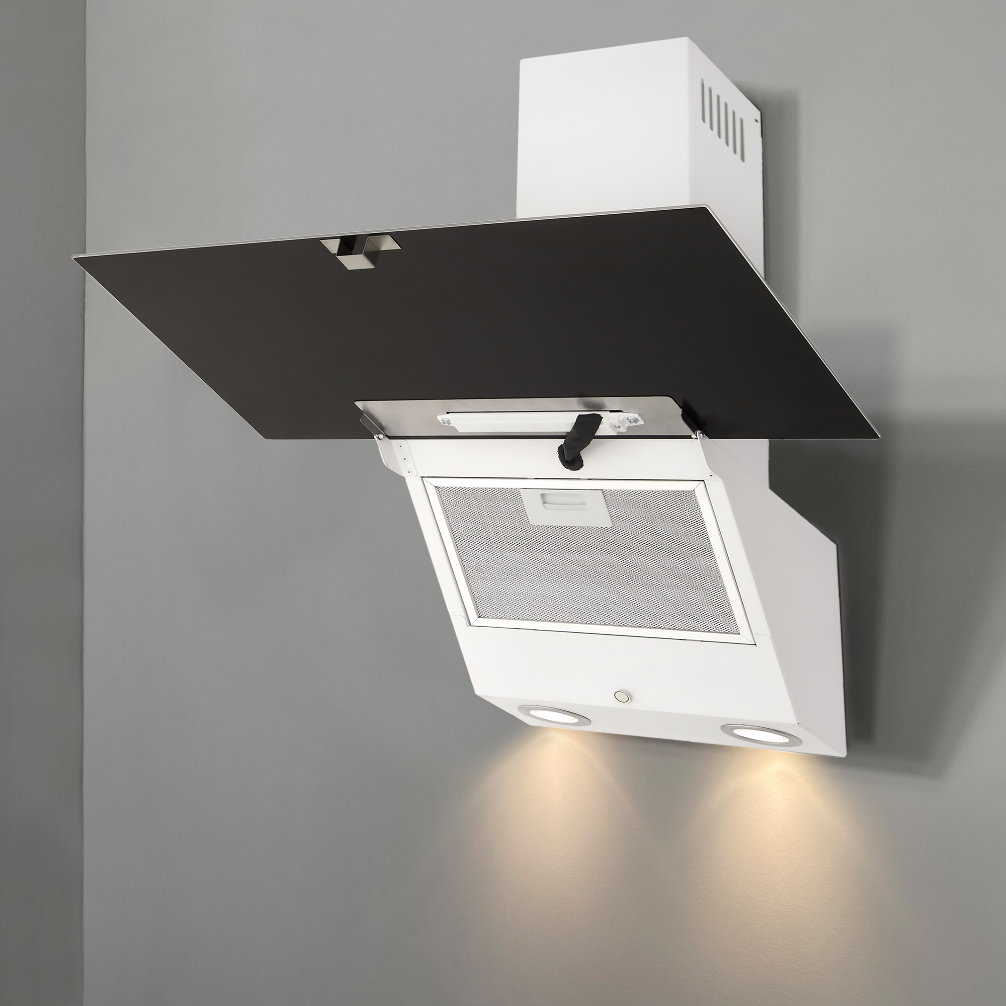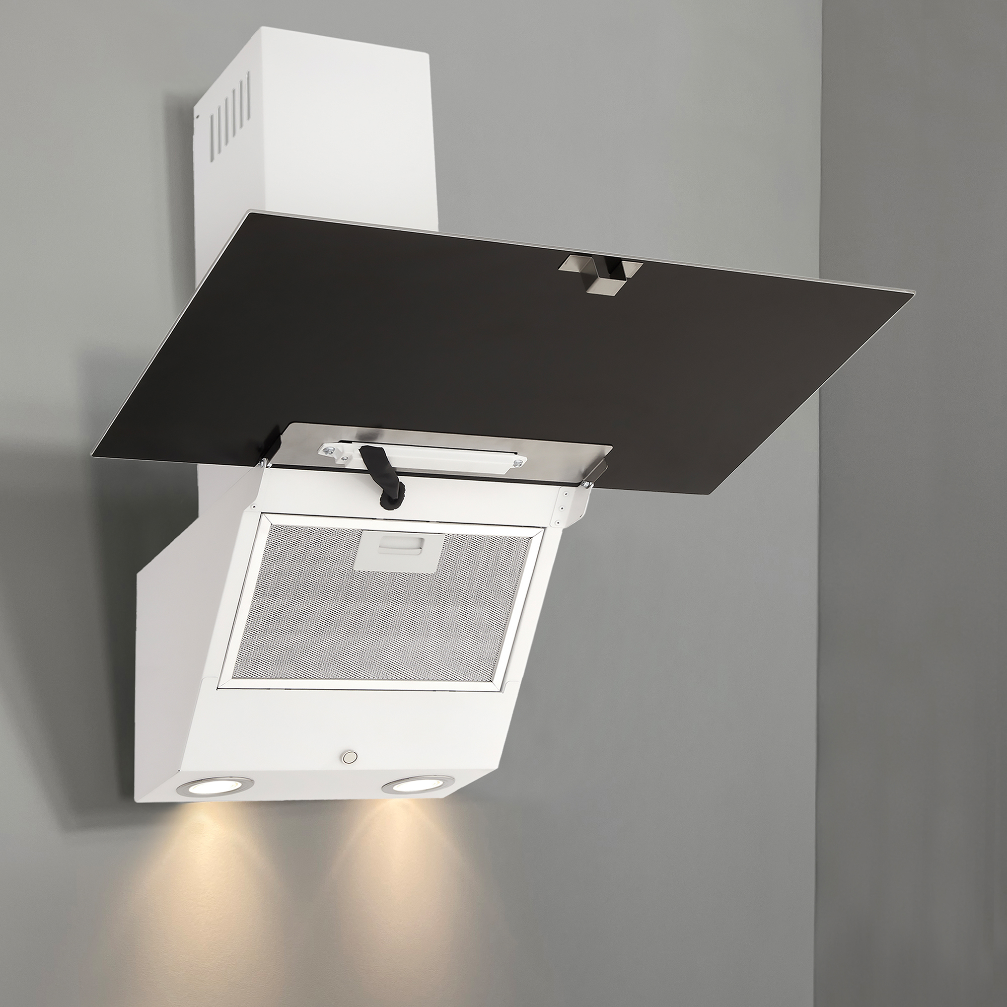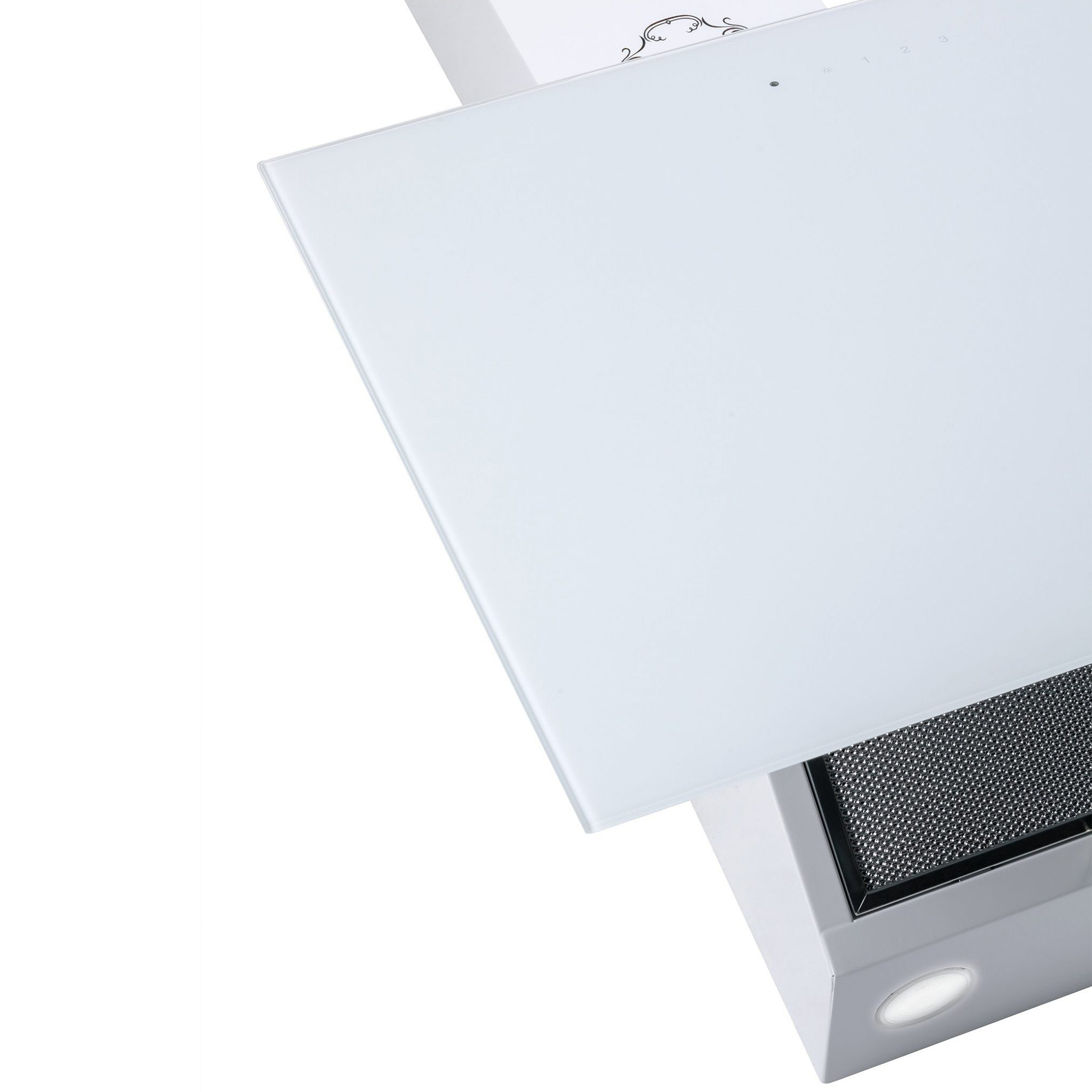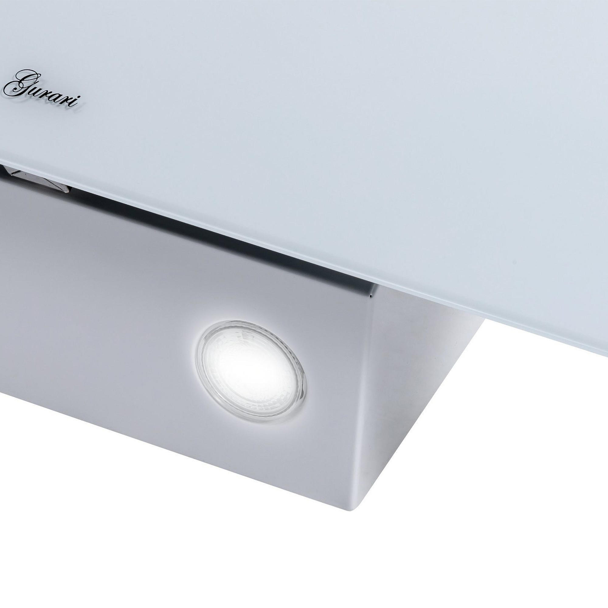 Das Modell GCH D 286 WH 6 PRIME N  ist eine moderne Dunstabzugshaube in kopffreier Bauweise. Korpus und Kamin sind weiß lackiert. Die Front besteht aus Weißglas.