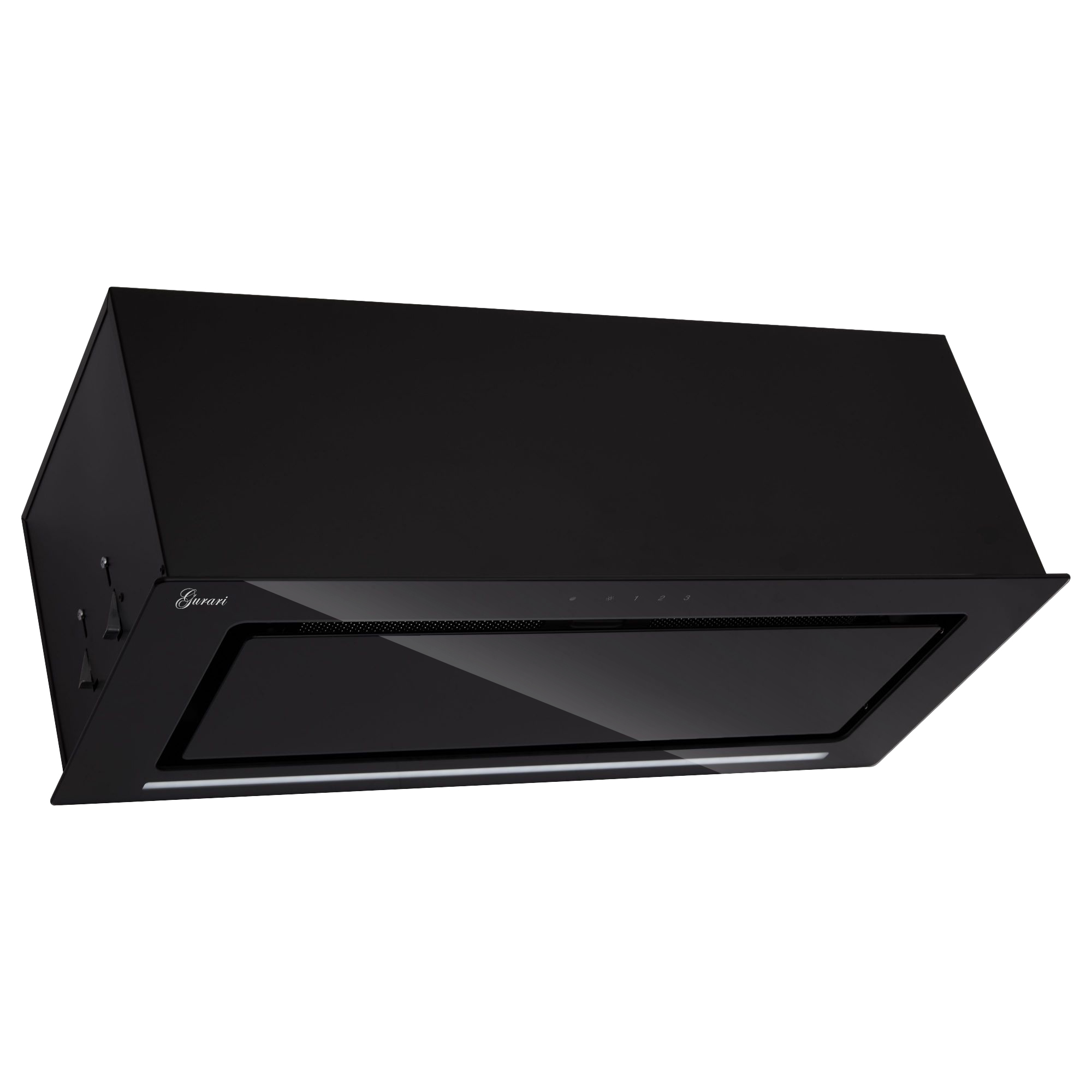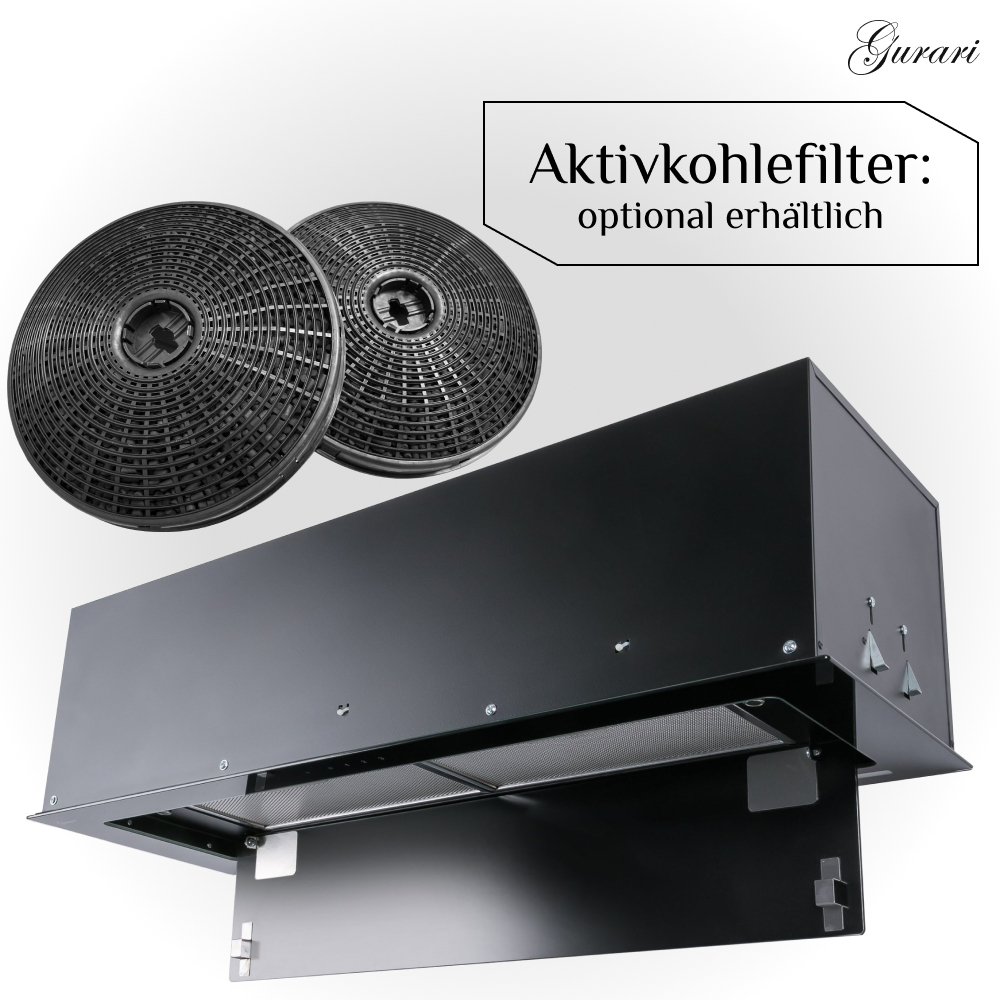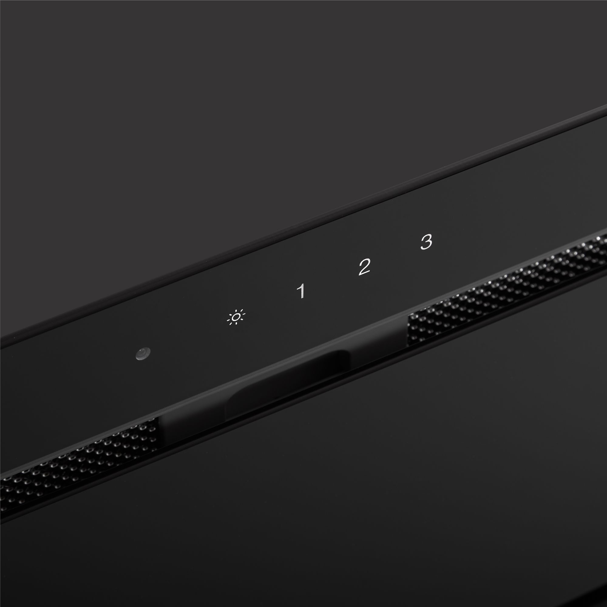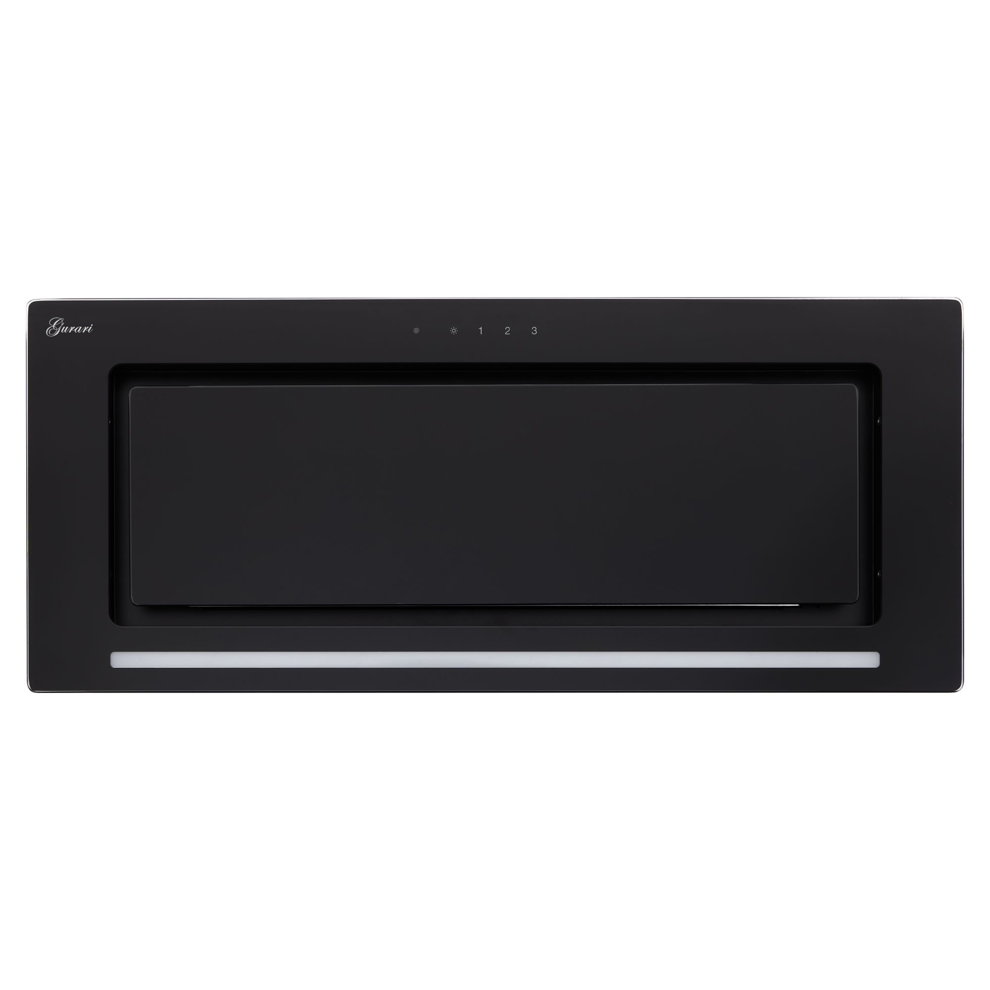Rahmen und Innenplatte sind komplett in Schwarz gehalten. Ein 6 Watt LED Streifen sorgt für optimale Beleuchtung der Kochfläche. Im äußeren Rahmen ist das Bedienfeld eingearbeitet. Die verschiedenen Funktionen der Dunstabzugshaube (Licht, Stufenregulierung und Timer) können dort über die “Touch Control” Steuerung oder die im Lieferumfang enthaltene Fernbedienung gesteuert werden.