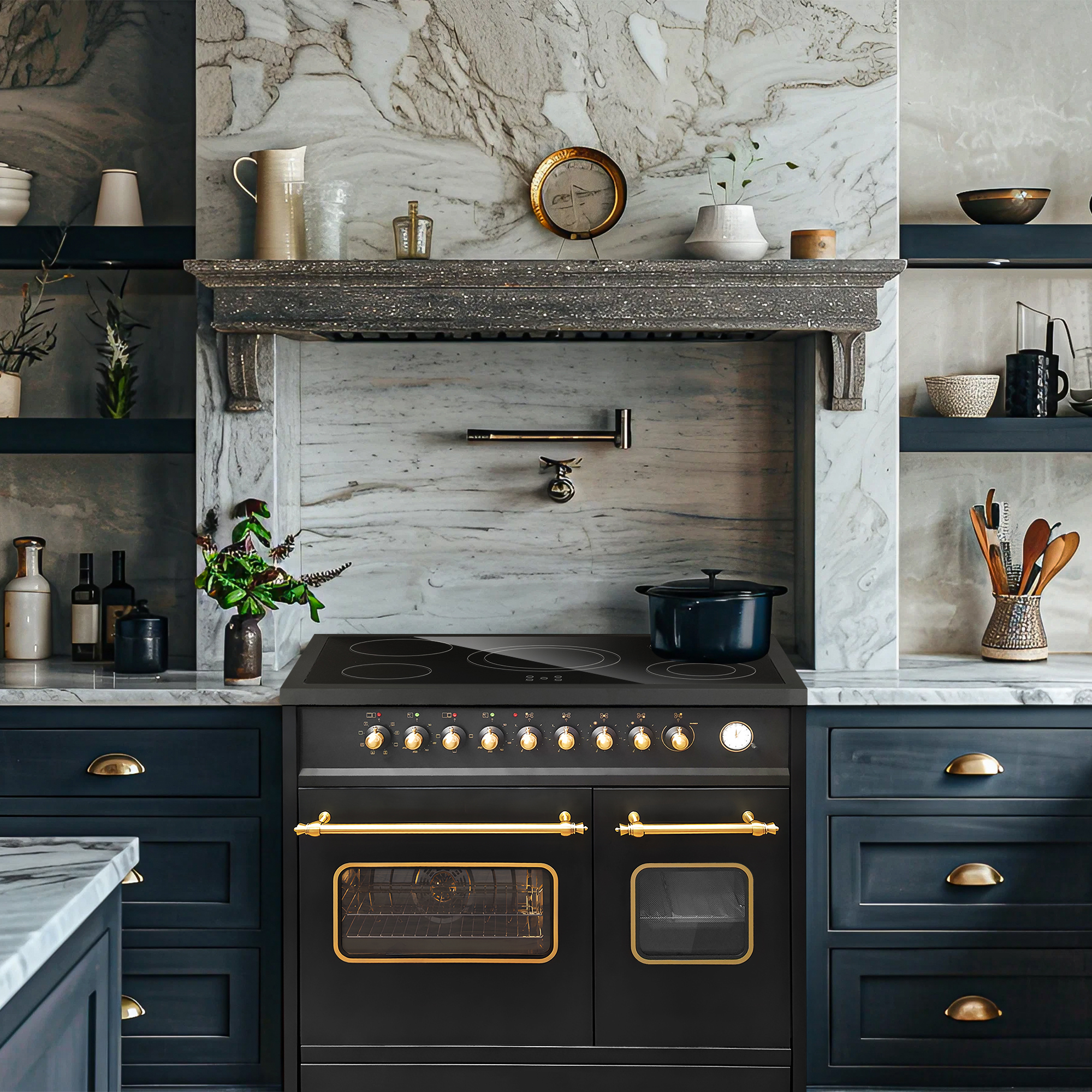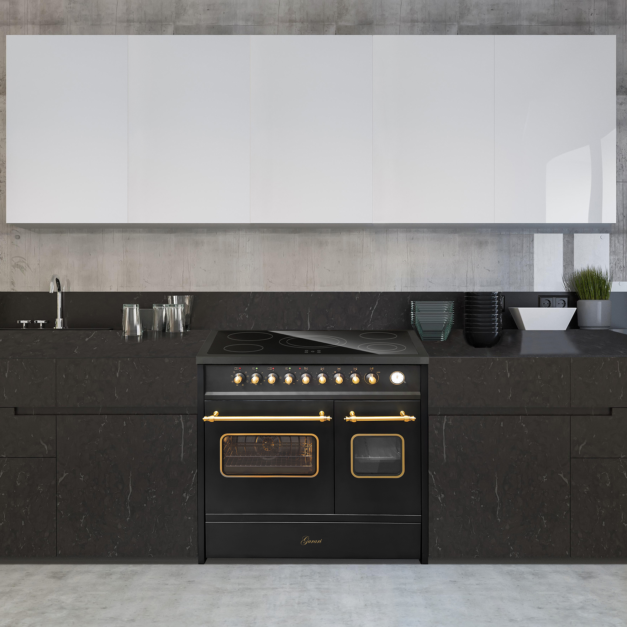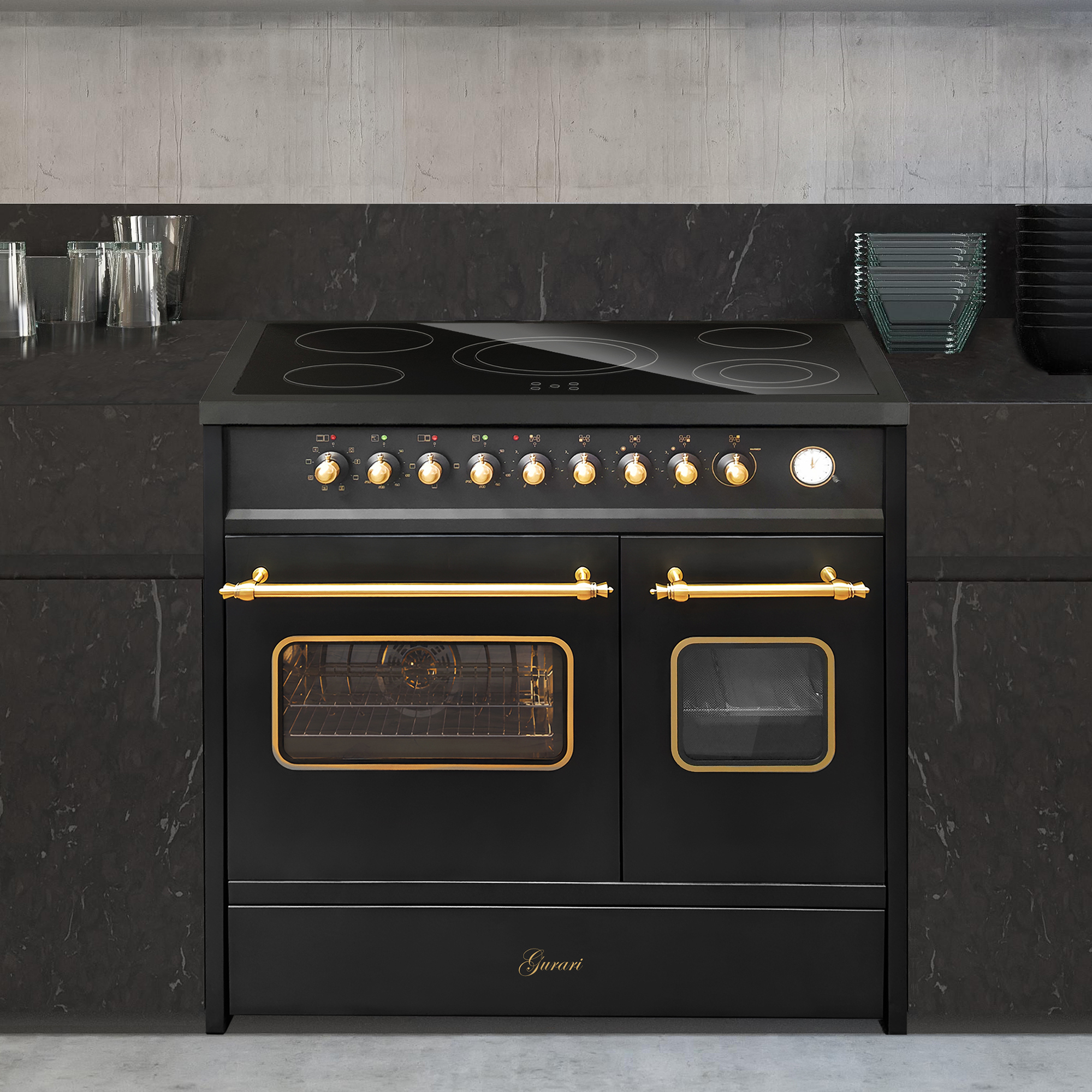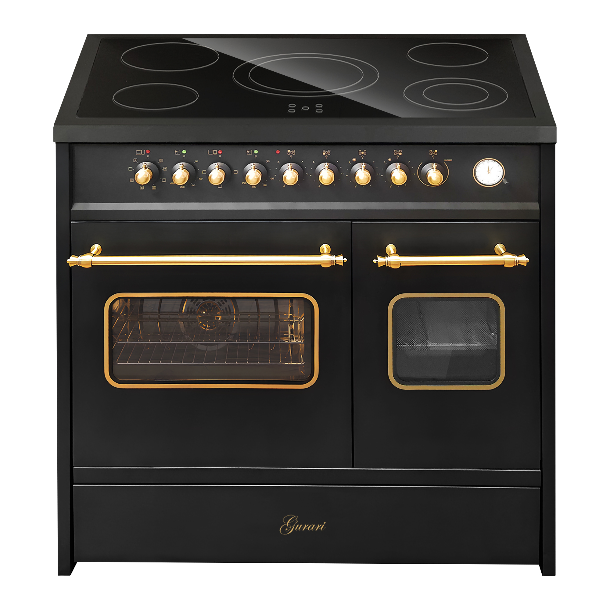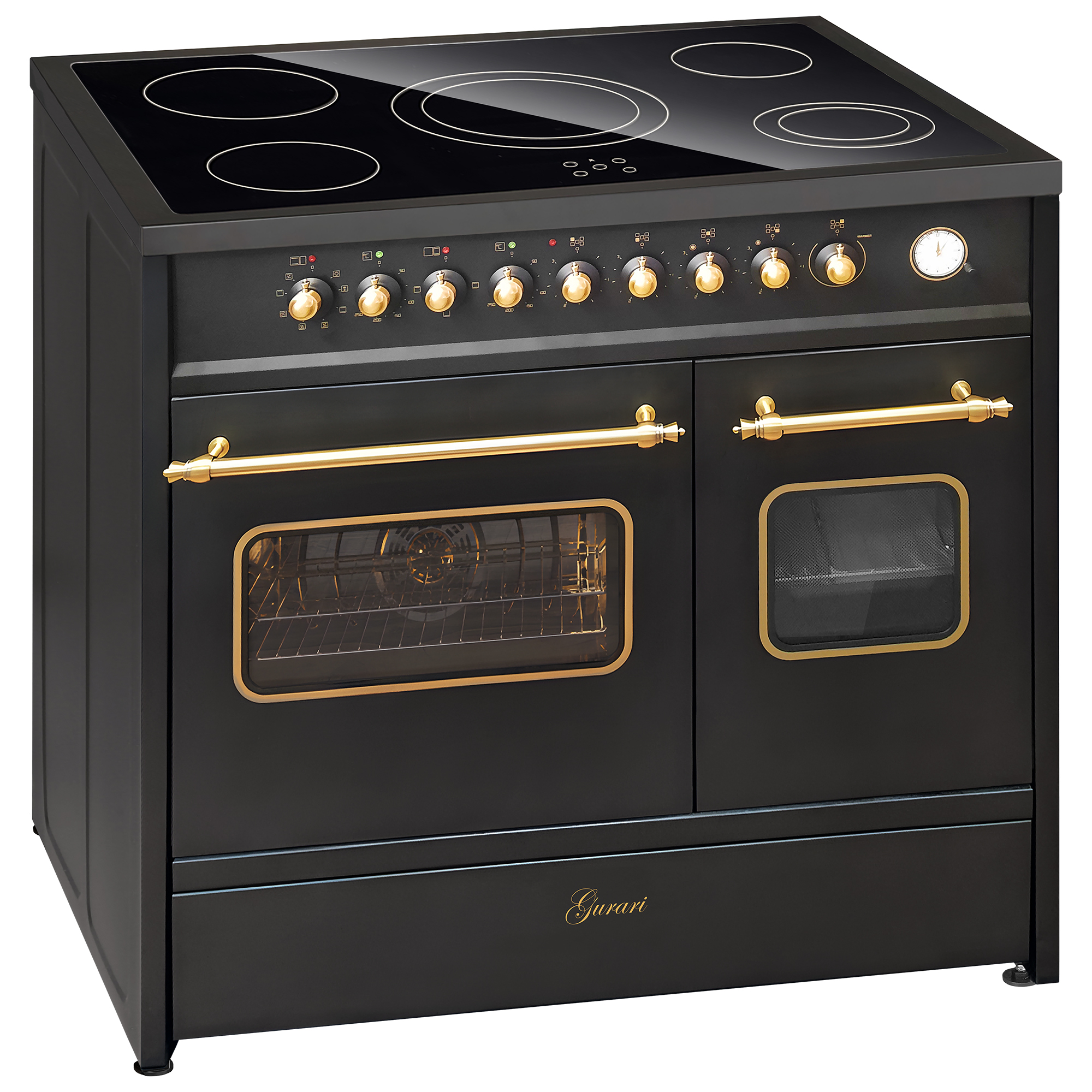 Retro Elektro Standherd 90 cm mit zwei Backöfen in Schwarz