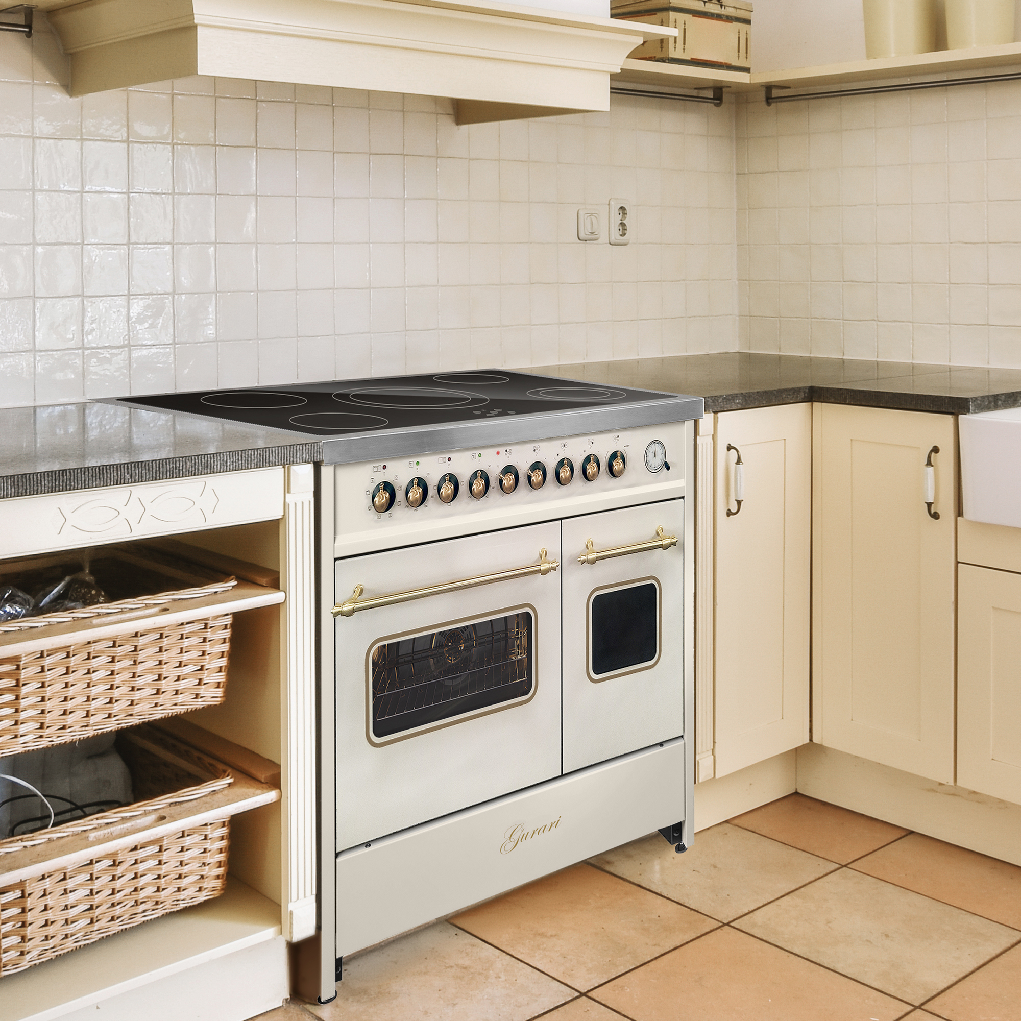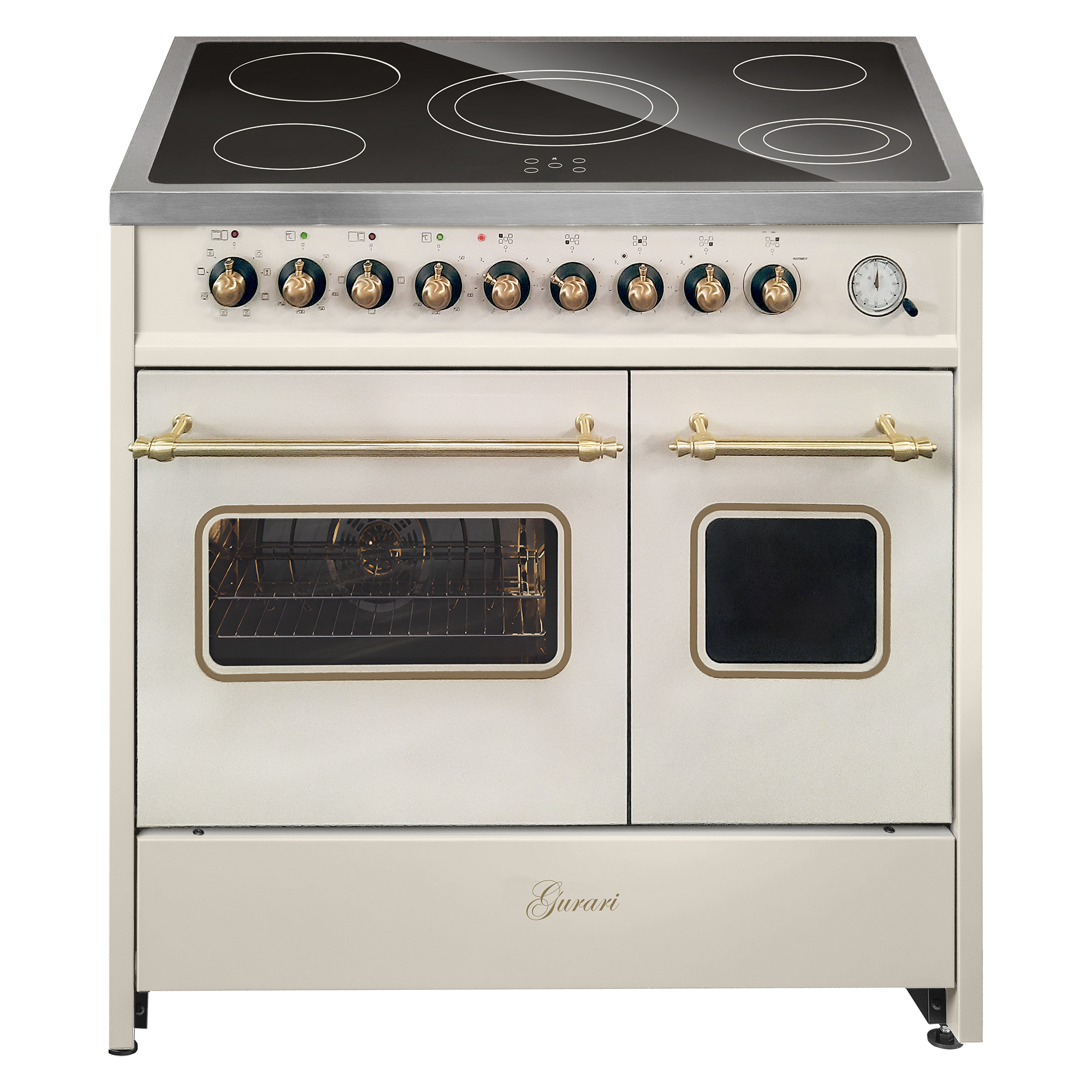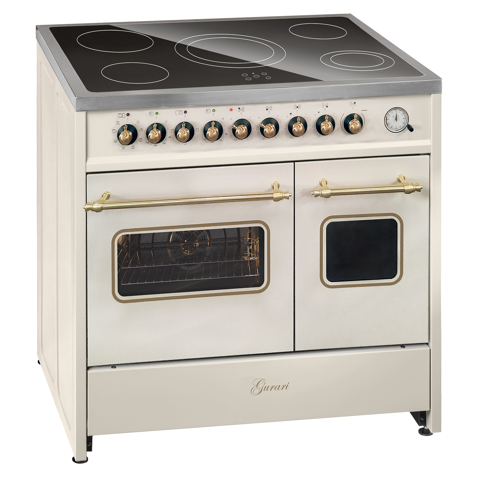 Retro Elektro Standherd 90 cm mit zwei Backöfen in Creme