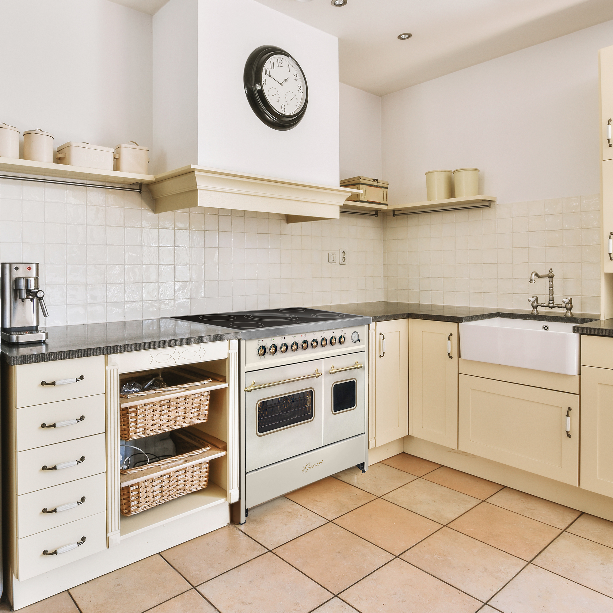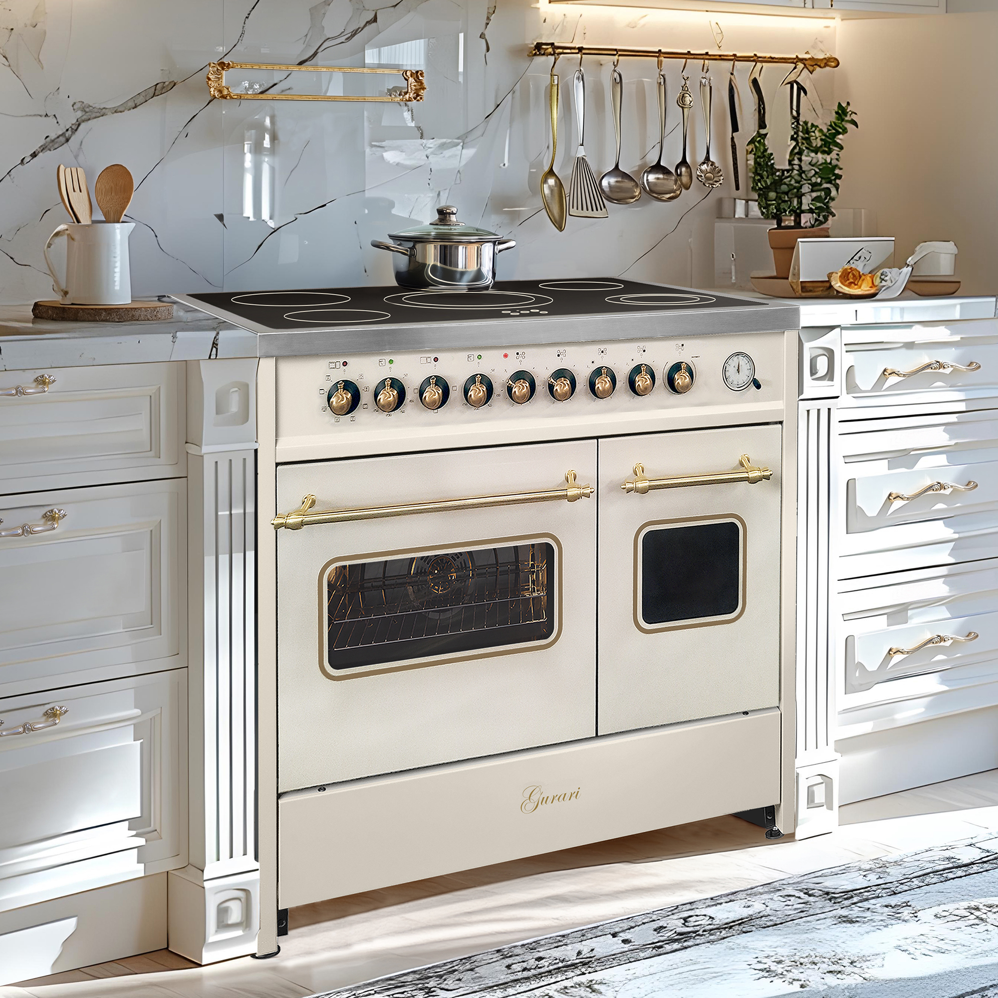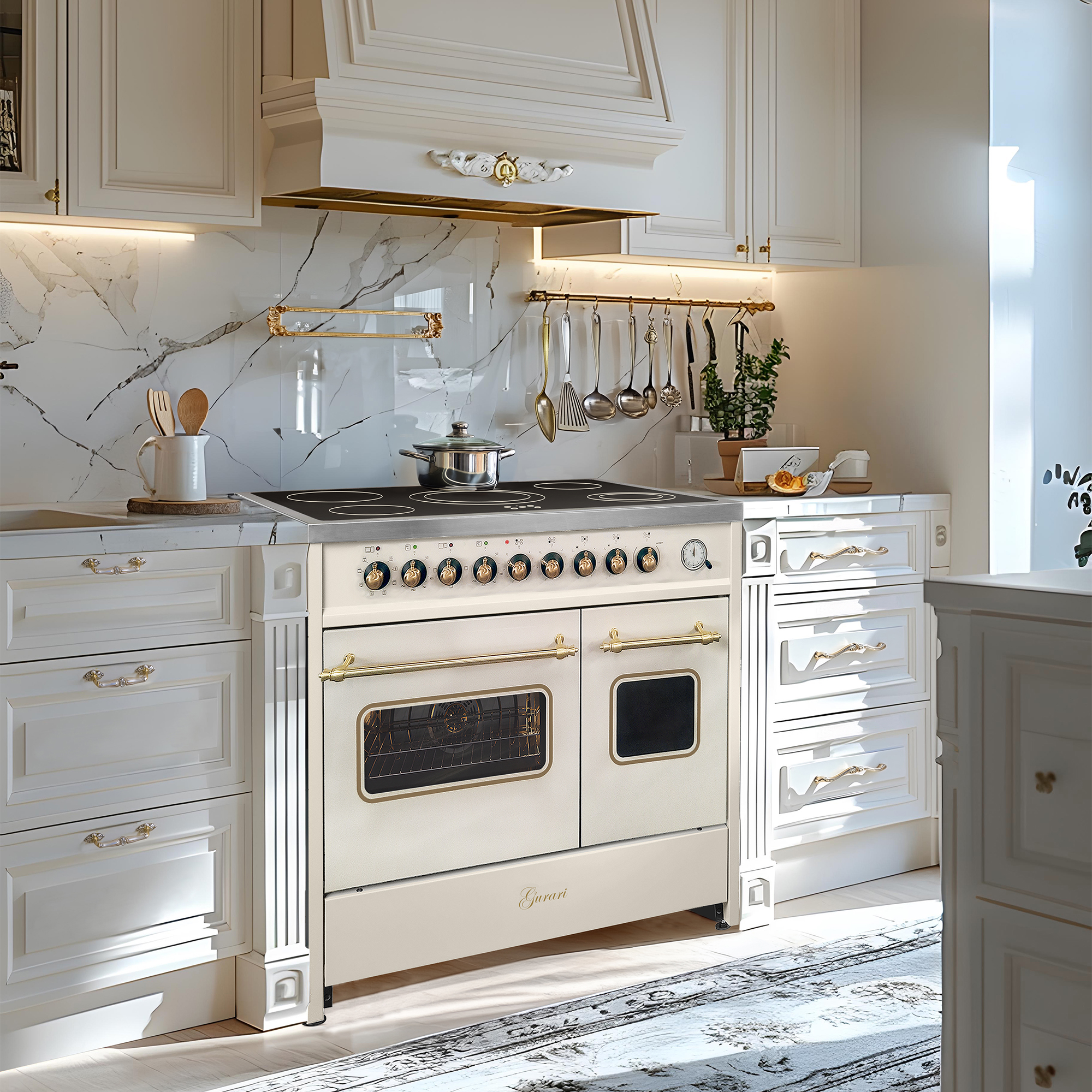 Retro Elektro Standherd 90 cm mit zwei Backöfen in Creme