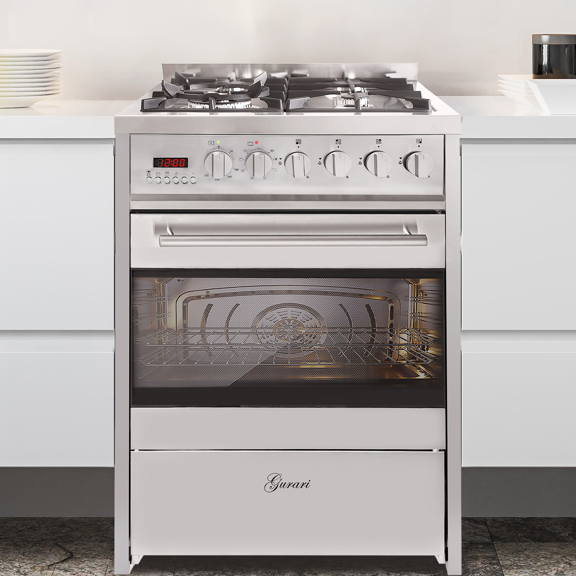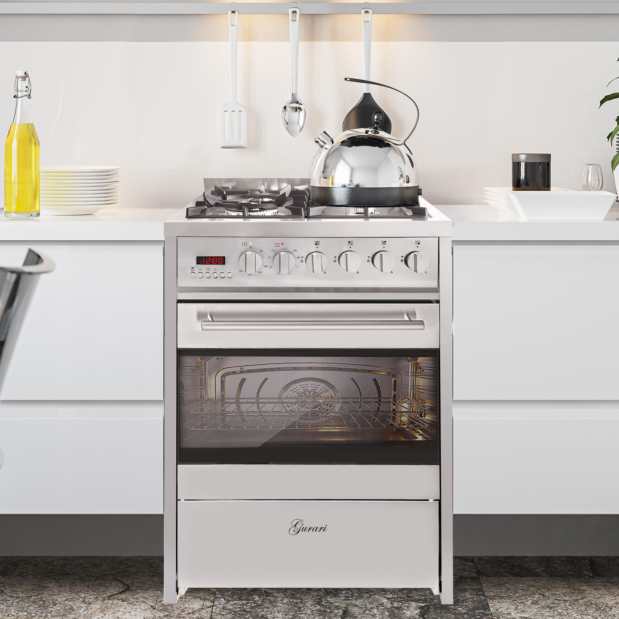 - Der Herd von Gurari kann ohne Füße aufgestellt werden.
