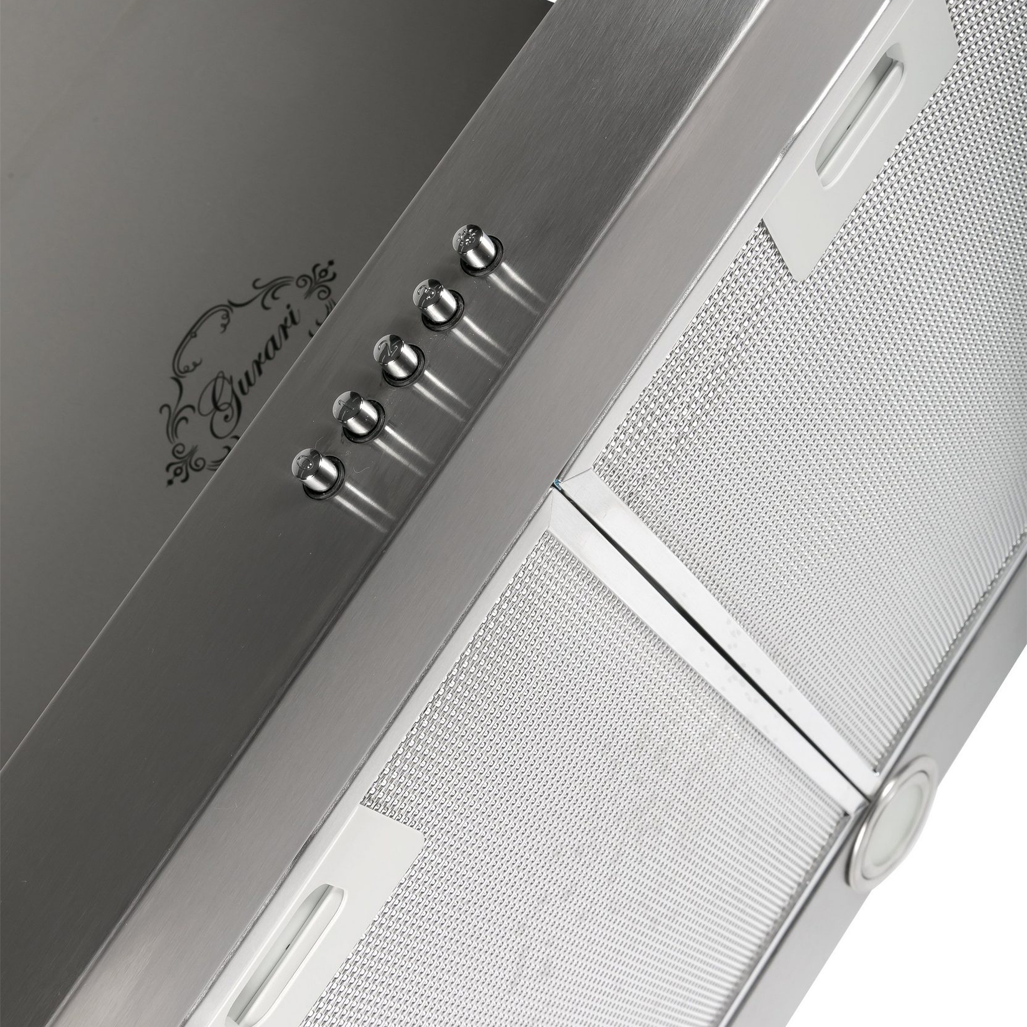 - Die Dunstabzugshaube ist komplett in Edelstahl gehalten.